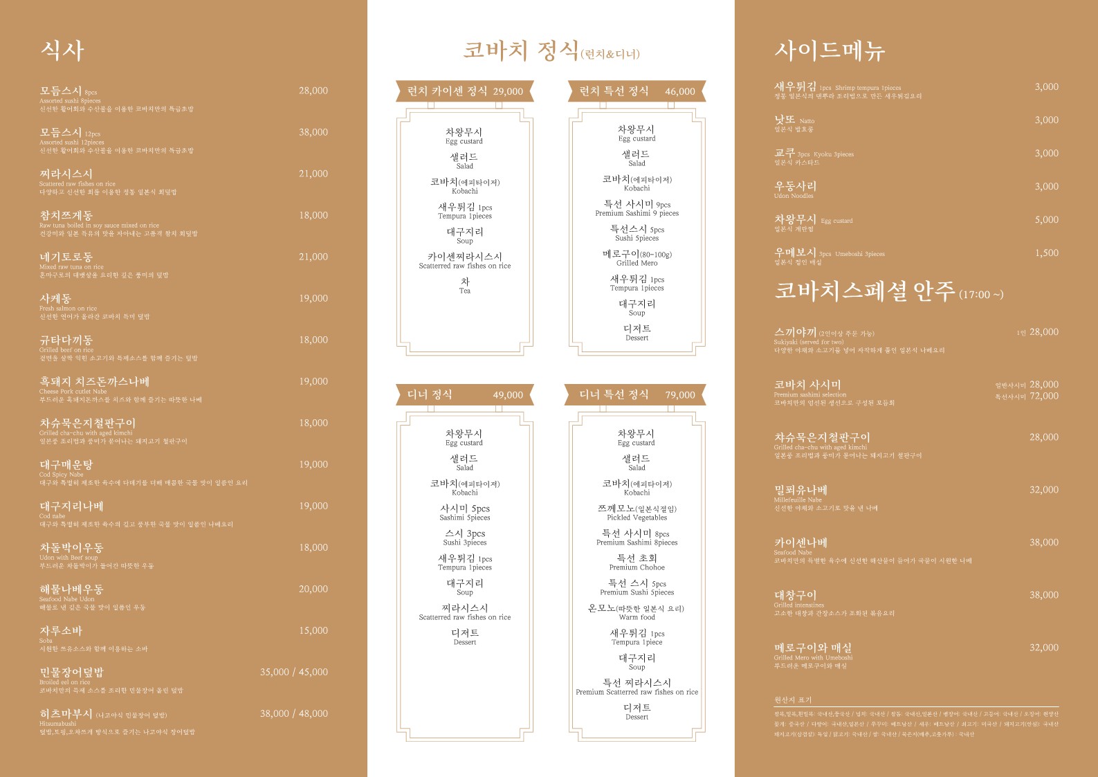 코바치 메뉴판은 클릭하면 확대됩니다.