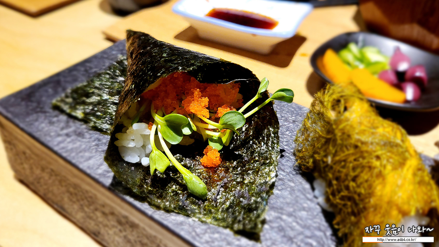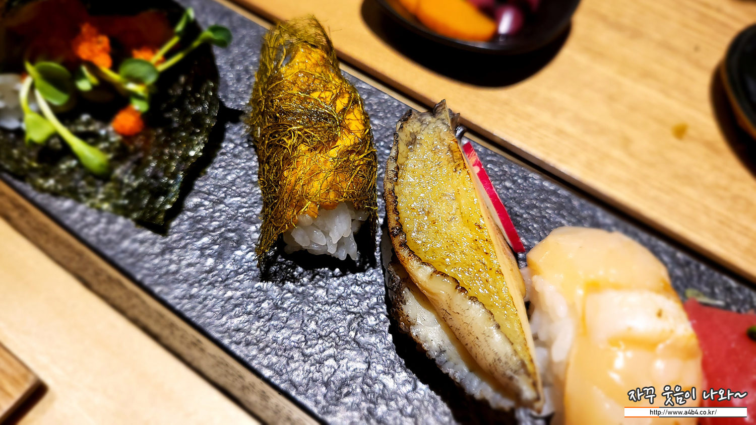 이미 초밥은 다 먹어버리고... 코스요리도 아닌데, 음식들이 나오는 시간차가 너무 크네요.