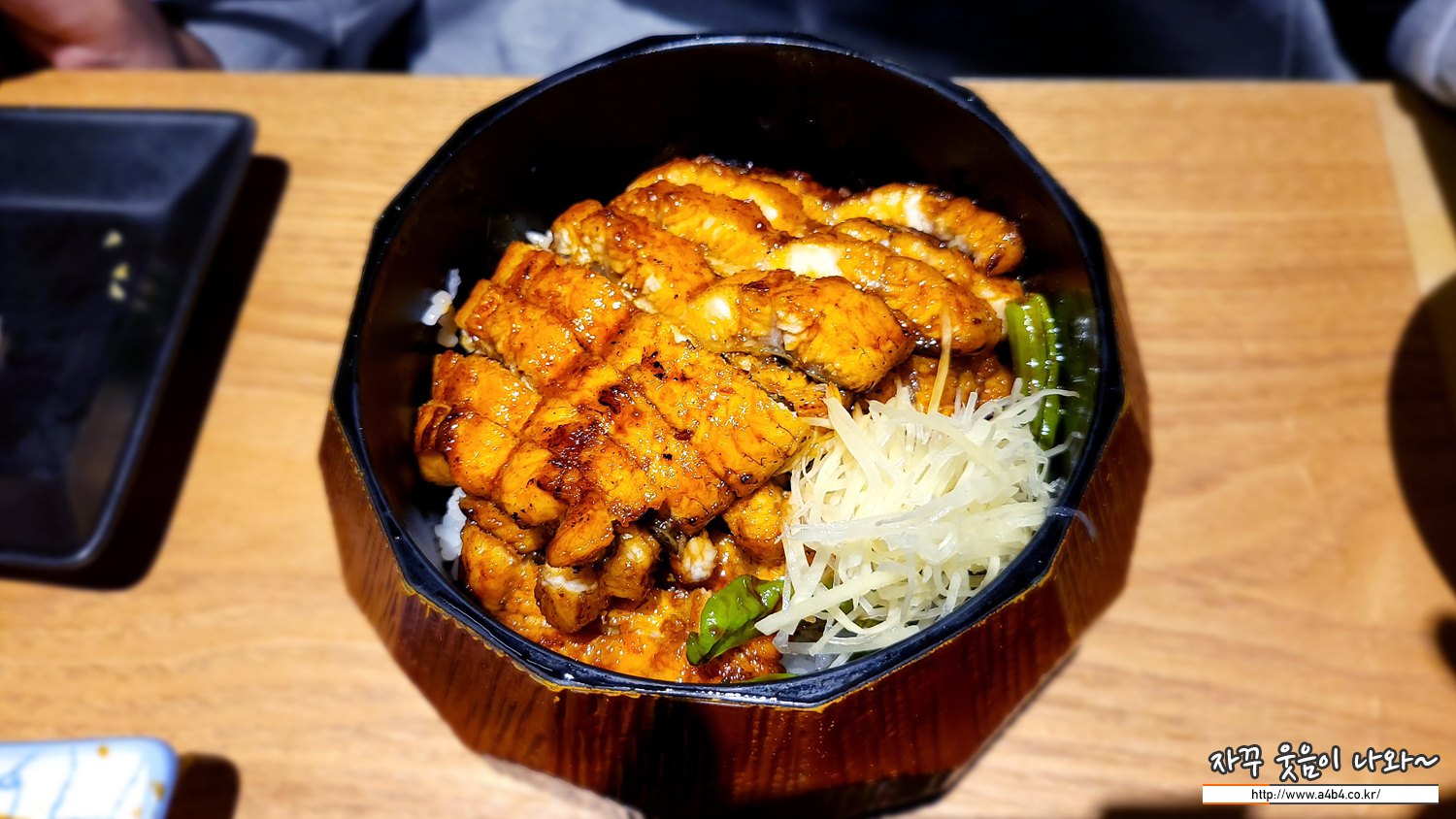 일반적인 장어덮밥 생각하시면 됩니다만 역시나 잠실 코바치 장어덮밥도 실망이네요. 이렇게 장어덮밥만 딸랑 나왔습니다. 보통 엎밥에는 미소된장국이나 우동국물이 나오지 않나요?
