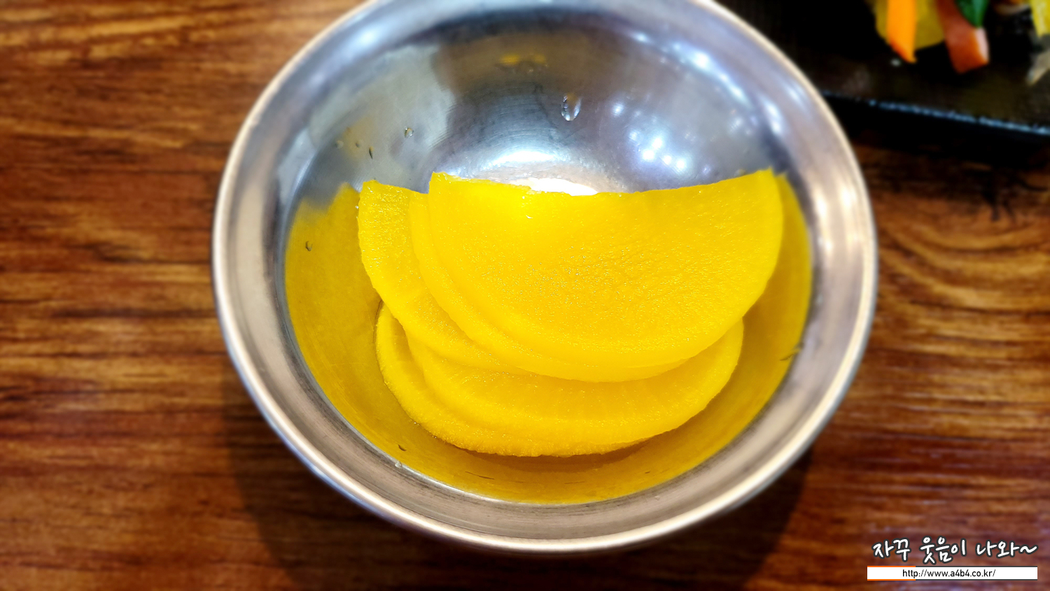 반찬은 김치와 단무지, 셀프로 리필 가능합니다. 뭐 김치는 중국산이지만...
