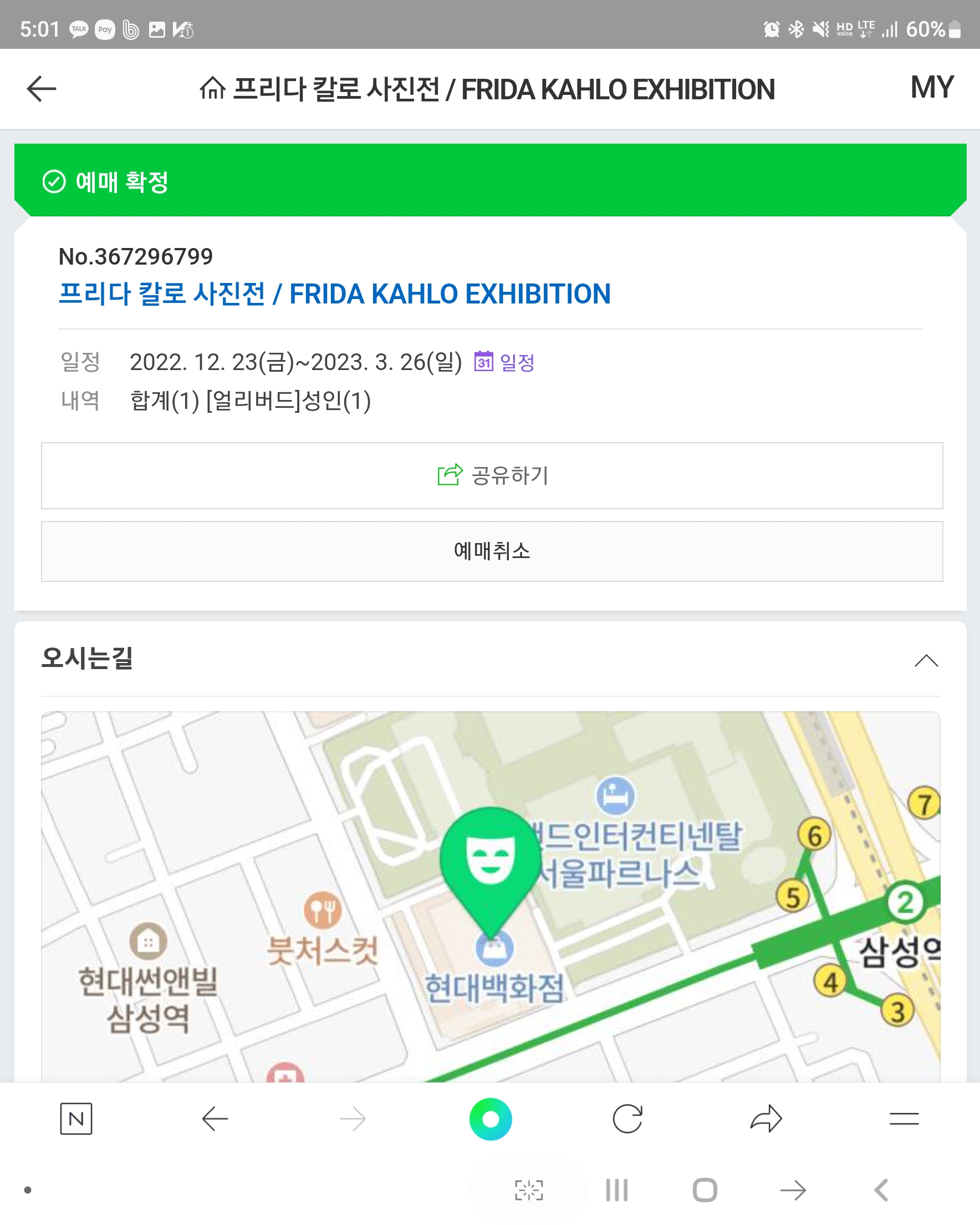 저는 프리다 칼로 사진전 얼리버드 티켓팅을 통해 50% 할인된 9천원에 관람했네요. 참고로 전시회 주차창은 무역센터 현대백화점을 이용하면 되며, 관람객은 2시간 무료주차가 지원됩니다.