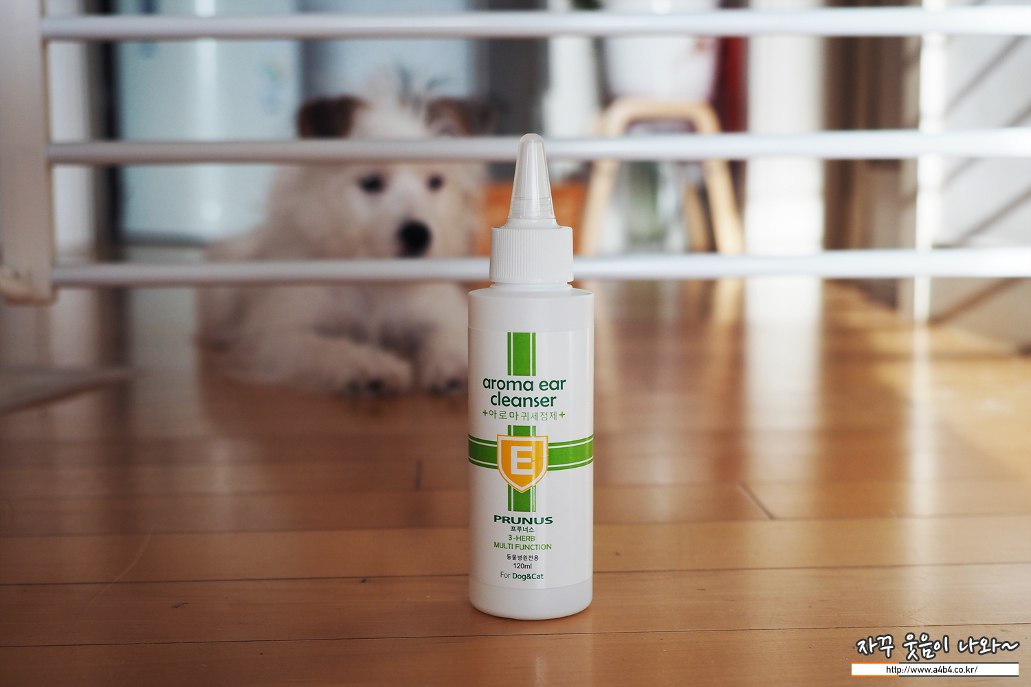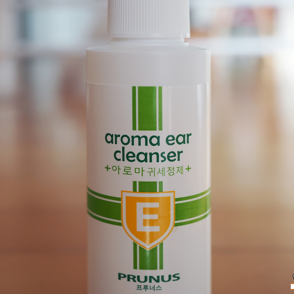 우리집 새 식구인 강아지 귀에 염증이 생겼다고 하네요. 동물병원에서 정기검사 중에 발견하고 치료와 함께 귀세정제를 받아 왔습니다. 제품명은 '프루너스 아로마 귀 세정제'로 강아지 귀염증과 귀청소를 하고 있는 약품입니다.