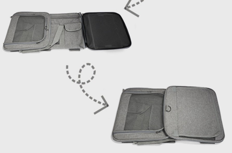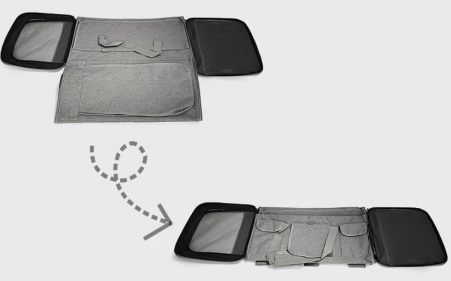 바로 대부분의 매쉬처리된 공간은 덮을 수 있는 덜개 부분이 장점입니다. 제가 마지막까지 고려한 타사 제품의 경우 측면을 가릴 수 없기도 했네요.그리고 두 곳의 수납공간이 있어 여분의 배변패드나 물통, 간식 등 수납이 가능합니다.