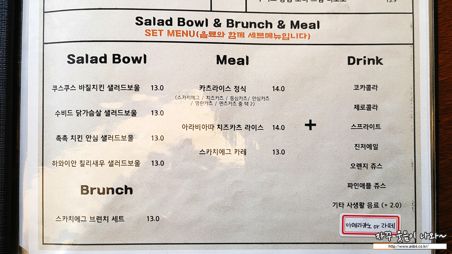 | 아리비아따 치즈카츠 라이스 (음료 포함 14,000원)