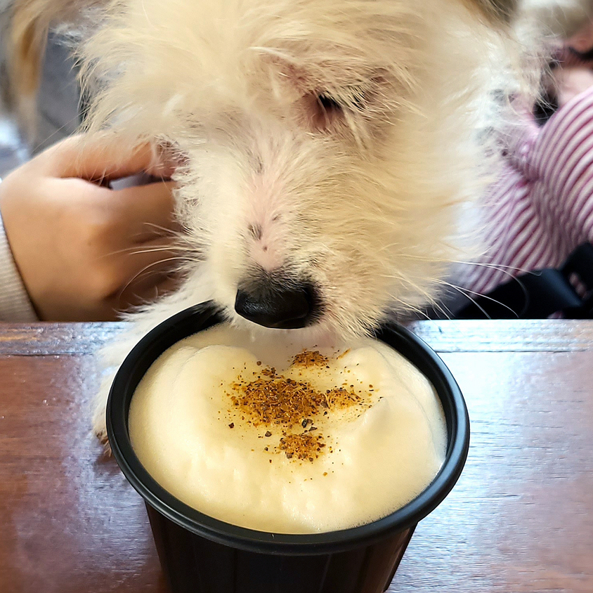 사생활에 방문한 우리 댕댕이를 위한 웰컴 선물이라고 합니다. 일명 멍푸치노...