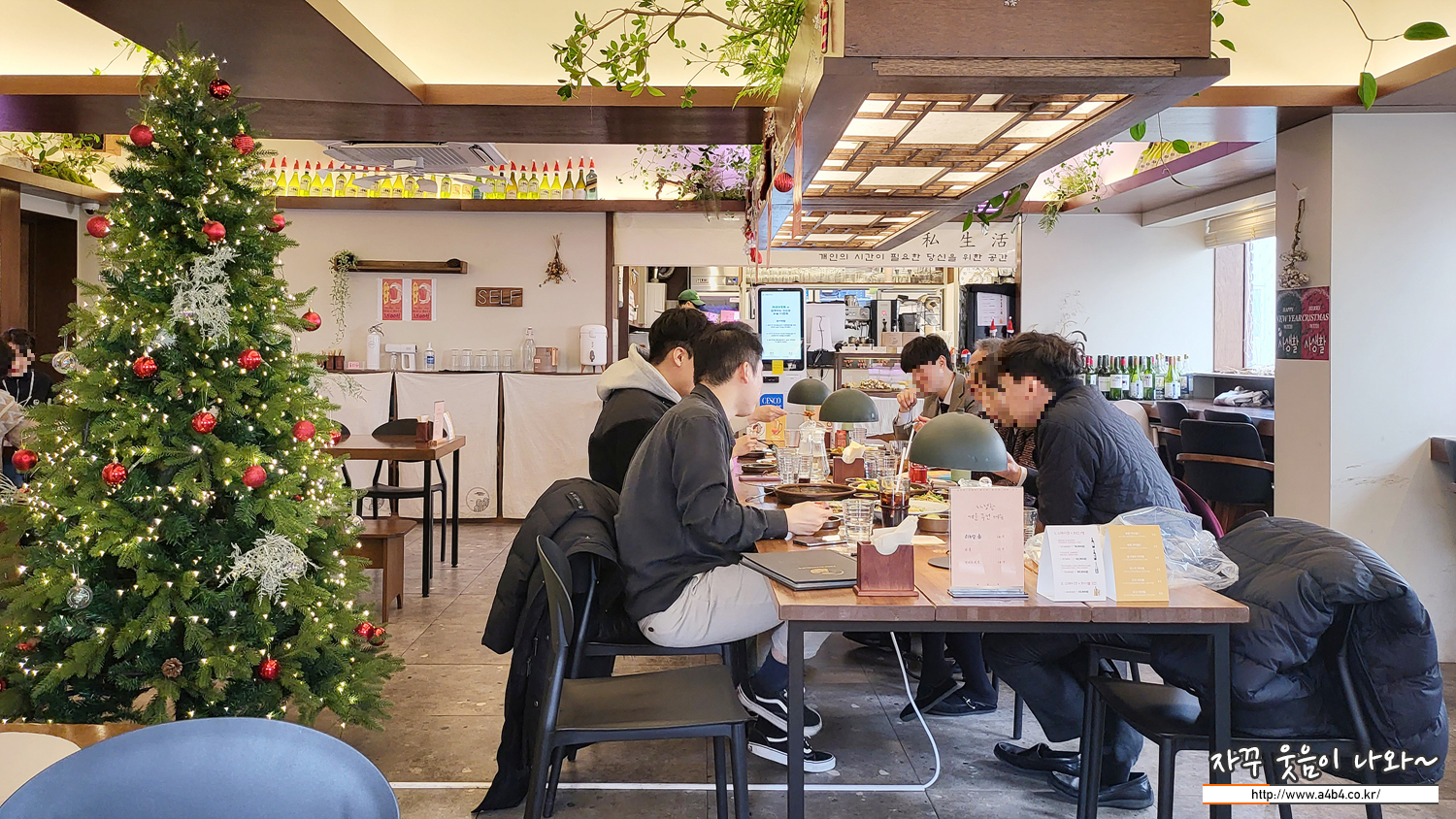 또 한켠에는 룸이 있는데요. 룸 안에는 4인 테이블 두 개가 있습니다. 이곳에는 문이 있어서 반려견을 바닥에 놓고 식사도 가능하다고 합니다. 아쉽게도 제가 방문한 시간에는 이미 식사중이신 분들이 있어 창가로 자리를 잡았습니다.