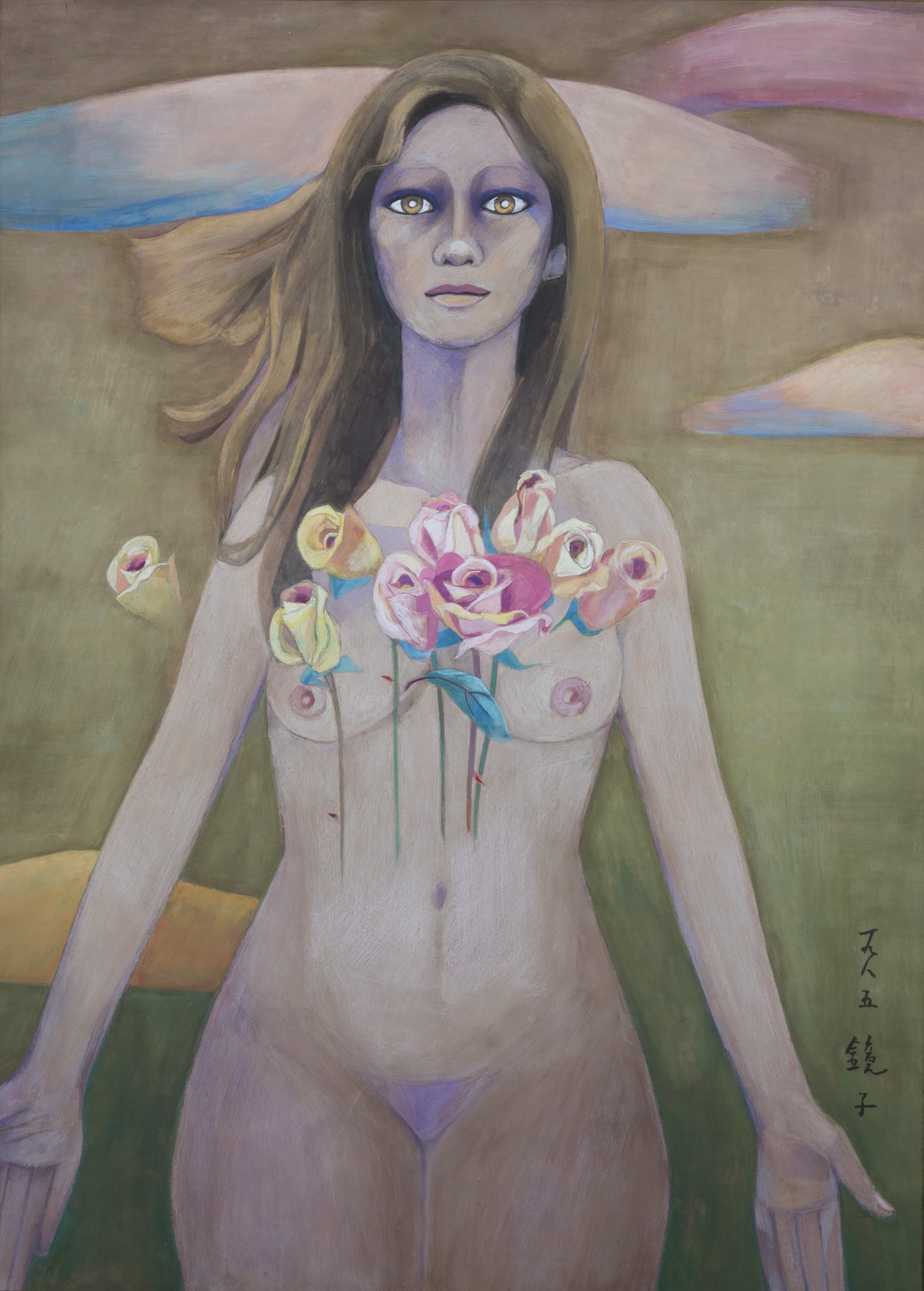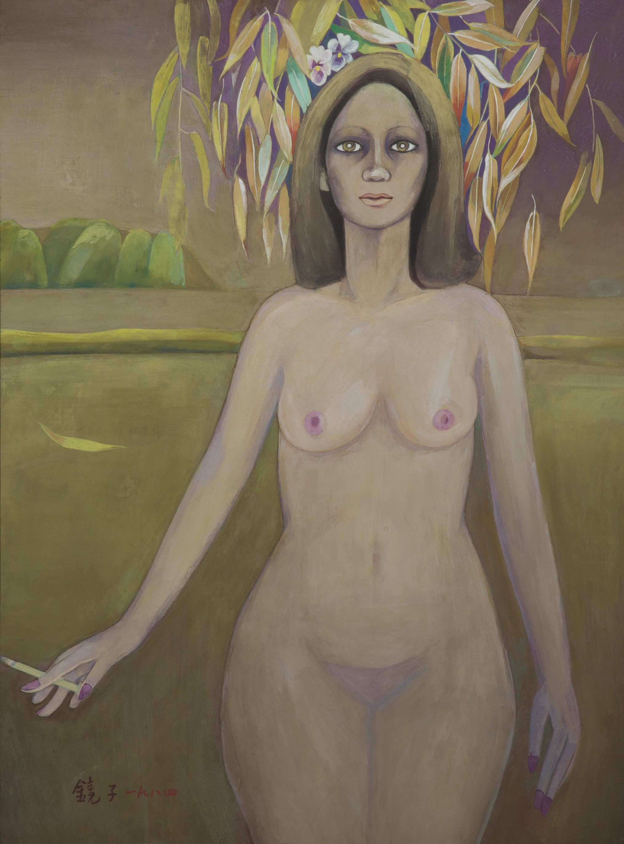 <여인의 시 Ⅰ>(1984)는 사무치는 고독 속에서 삶에 대한 애착을 드러낸 작품이다. 이 작품은 2점 연작으로 제작되었다. 천경자는 1980년대 중반 여인 누드를 화폭에 적극적으로 등장시키며 특정 모델의 사실적인 묘사가 아닌 자유로운 표현으로서 누드를 그렸다. 1969년부터 1990년대까지는 해외여행에서 지속적으로 원시성, 원시미를 탐구했는데, 이는 인간 본연의 원초적인 모습과 관련된다. 나체 여인의 등장은 생명을 탄생시키는 근원을 여성으로 보는 모체회귀와 연관된다. 여인의 얼굴과 눈망울에는 고독감이 가득하다. 벌거벗은 채 당당하게 서 있는 여인상은 세상의 모진 풍파 속에서 고고하게 살아온 천경자의 모습이자 생에 대한 애착과 생명감을 상징한다.