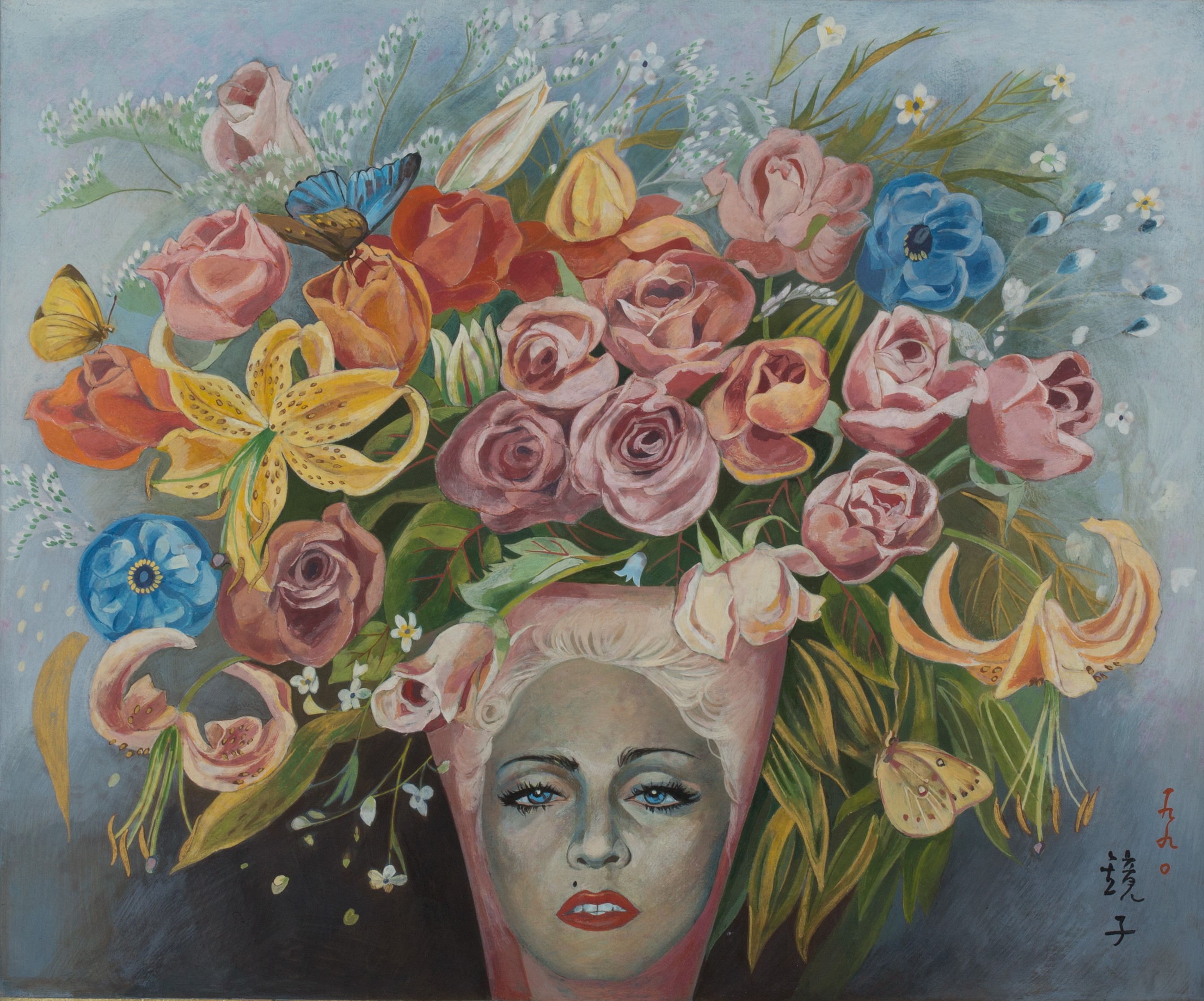 <화병이 된 마돈나>(1990)는 유명 스타를 소재로 그린 작품이다. 천경자는 1960년대 후반부터 자신이 좋아했던 유명 스타를 화폭에 담아내기 시작했다. 환상 속에 표상되었던 여인이 아니라 현재에 존재하는 구체적인 여인들이다. 천경자는 실제로 배우가 되고 싶어 했고 평생 영화 같은 삶을 살았다. 할리우드 여배우 그레타 가르보와 마릴린 먼로에 이어 팝의 여왕 마돈나를 소재로 선택했다. 여배우 이미지 삽입은 인간의 정신적 욕구불만에 대한 도전을 표출한 것이다. 꽃을 가득 꽂은 화병에 매혹적인 마돈나의 얼굴은 사실적으로 묘사됐지만 눈망울에 우수가 가득하다. 표정에서 느껴지는 애상은 여성이라는 편견과 차별을 극복하지 못한 유명 스타의 삶에 천경자 자신의 한을 대입시킨 것이다.