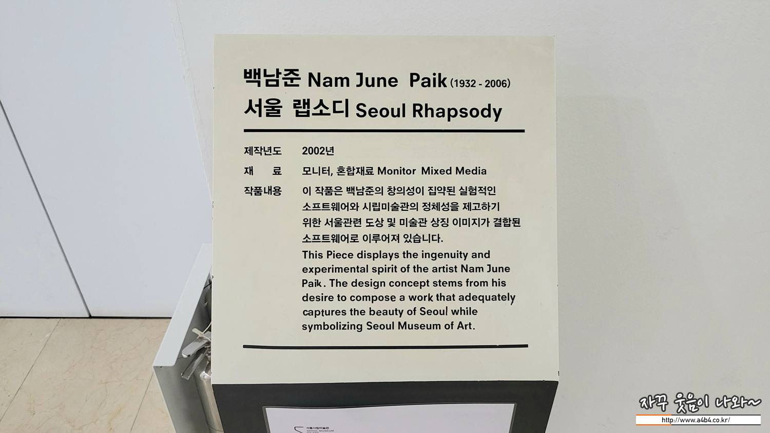 전시장 1층에는 '키키 스미스' 특별전이 열리고 있습니다. 그리고 백남준 작가의 서울 랩소디 작품을 감상할 수 있습니다. 오늘 소개하는 천경자 전시회는 물론 '키키스미스' 전시회도 추천 드립니다. 꼭 같이 보세요.