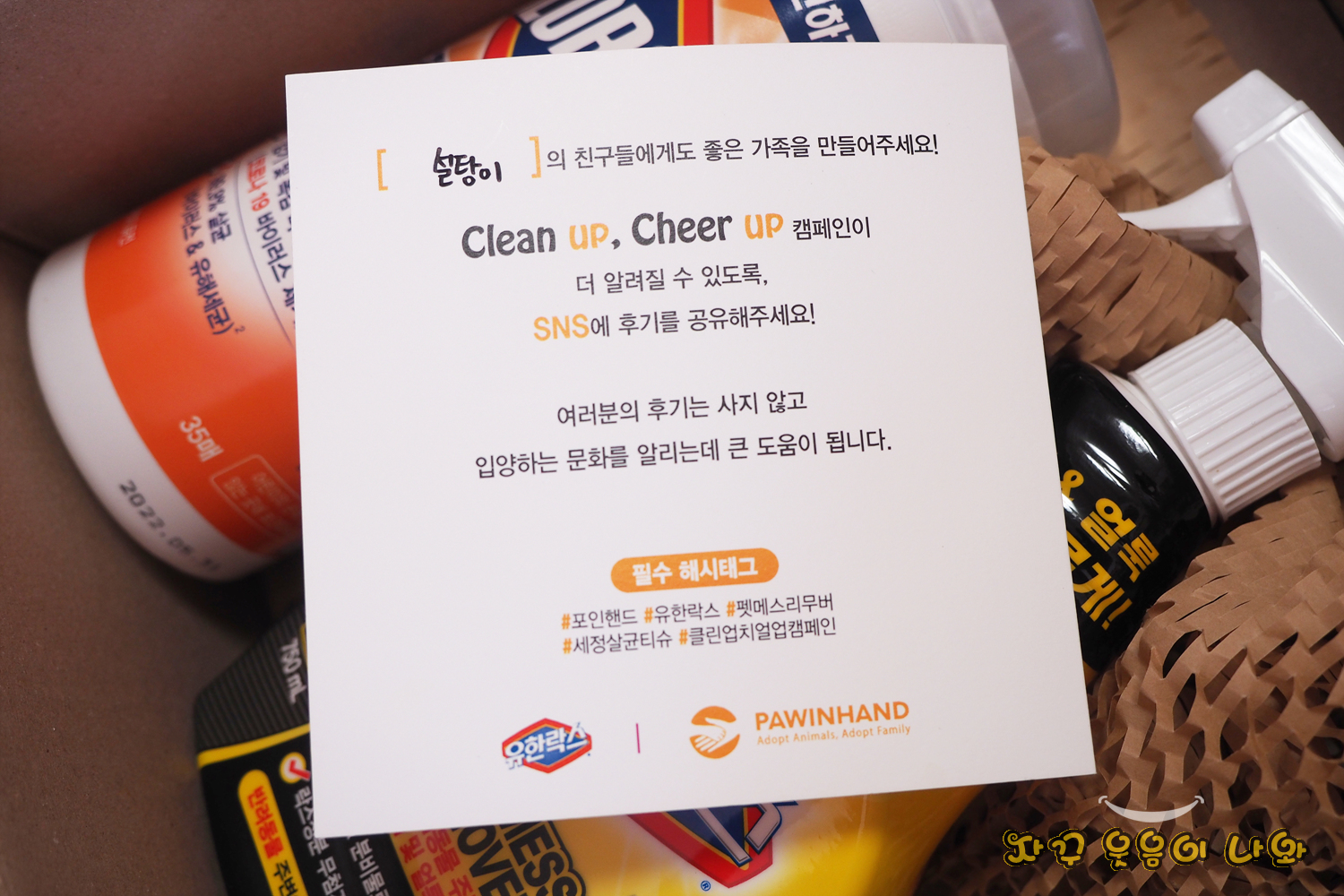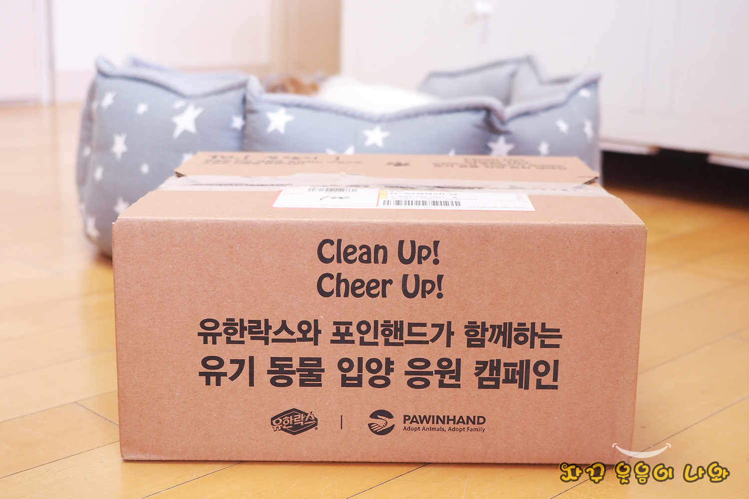 이렇게 택배가 도착 했네요. '유한락스와 포인핸드가 함께하는 유기 동물 입양 응원 캠페인'