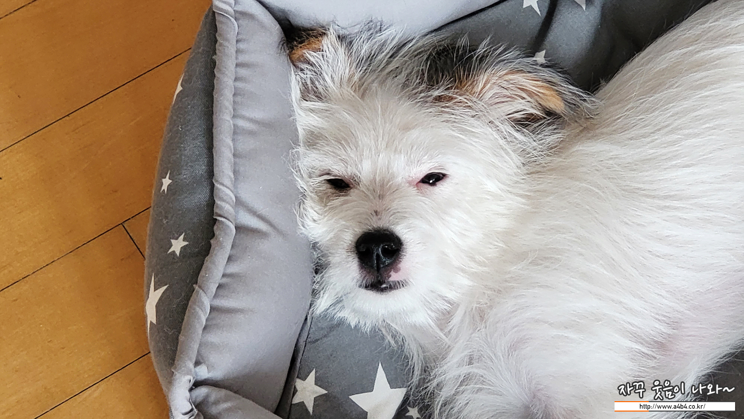 작년 12월 초에 포인핸드를 통해 용인시 동물보호센터에서 입양한 유기견인 믹스견 설탕이 입니다. 작년 10월 생으로 태어난지 4개월 된 아기강아지 입니다.