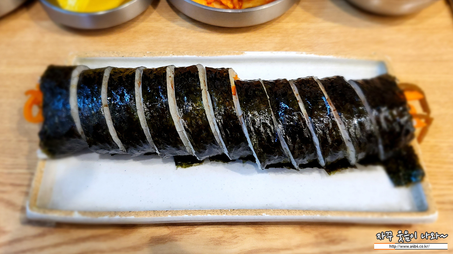 당근, 우엉, 오이, 계란, 단무지가 들어간 김밥. 비빔국수나 잔치국수가 다소 아쉬운 분들에게 추천 드립니다.