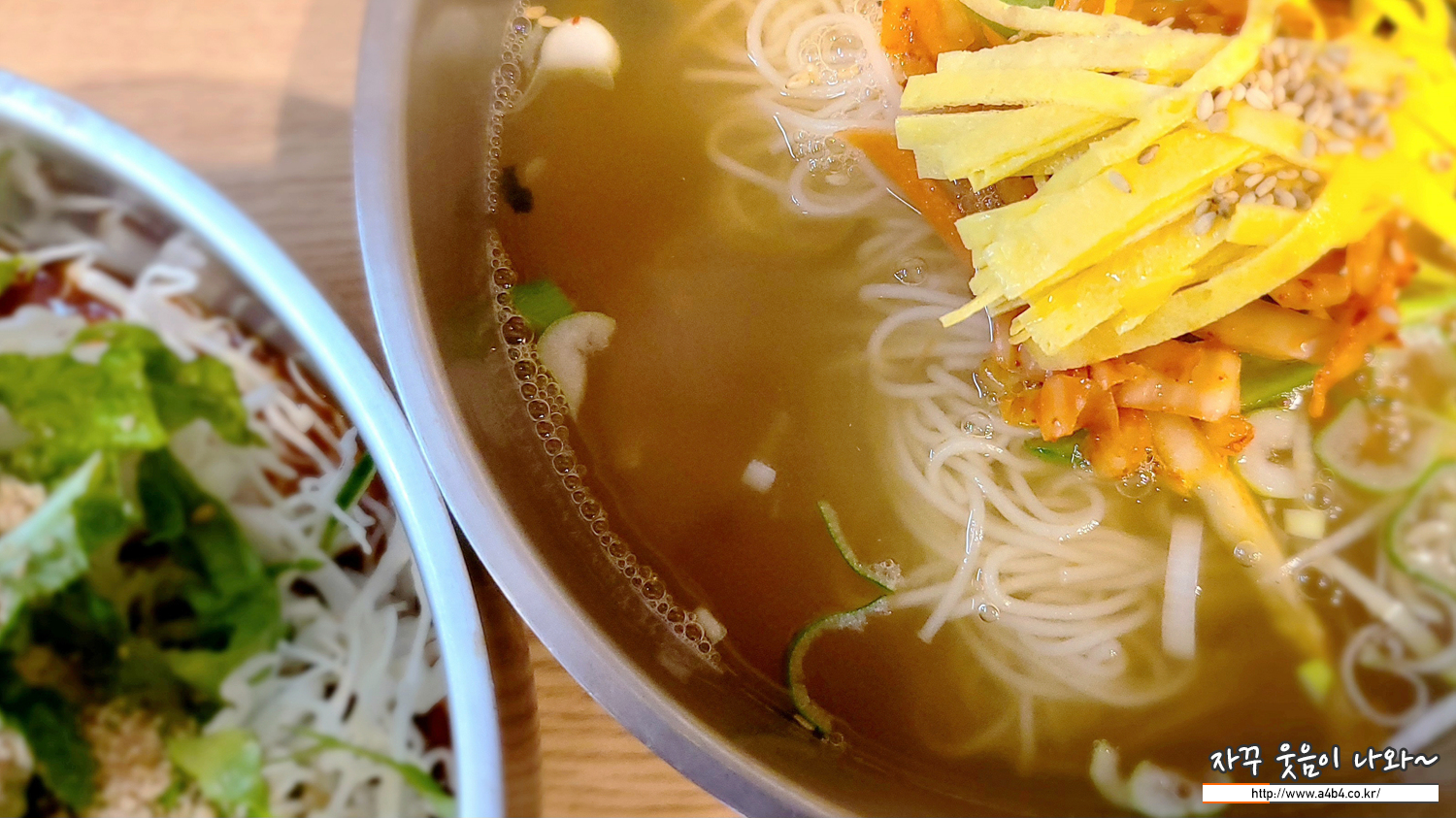 맛은 쏘쏘하네요. 비빔국수와 반 반씩 먹으니 이 또한 각각 다른 맛을 보여줍니다.