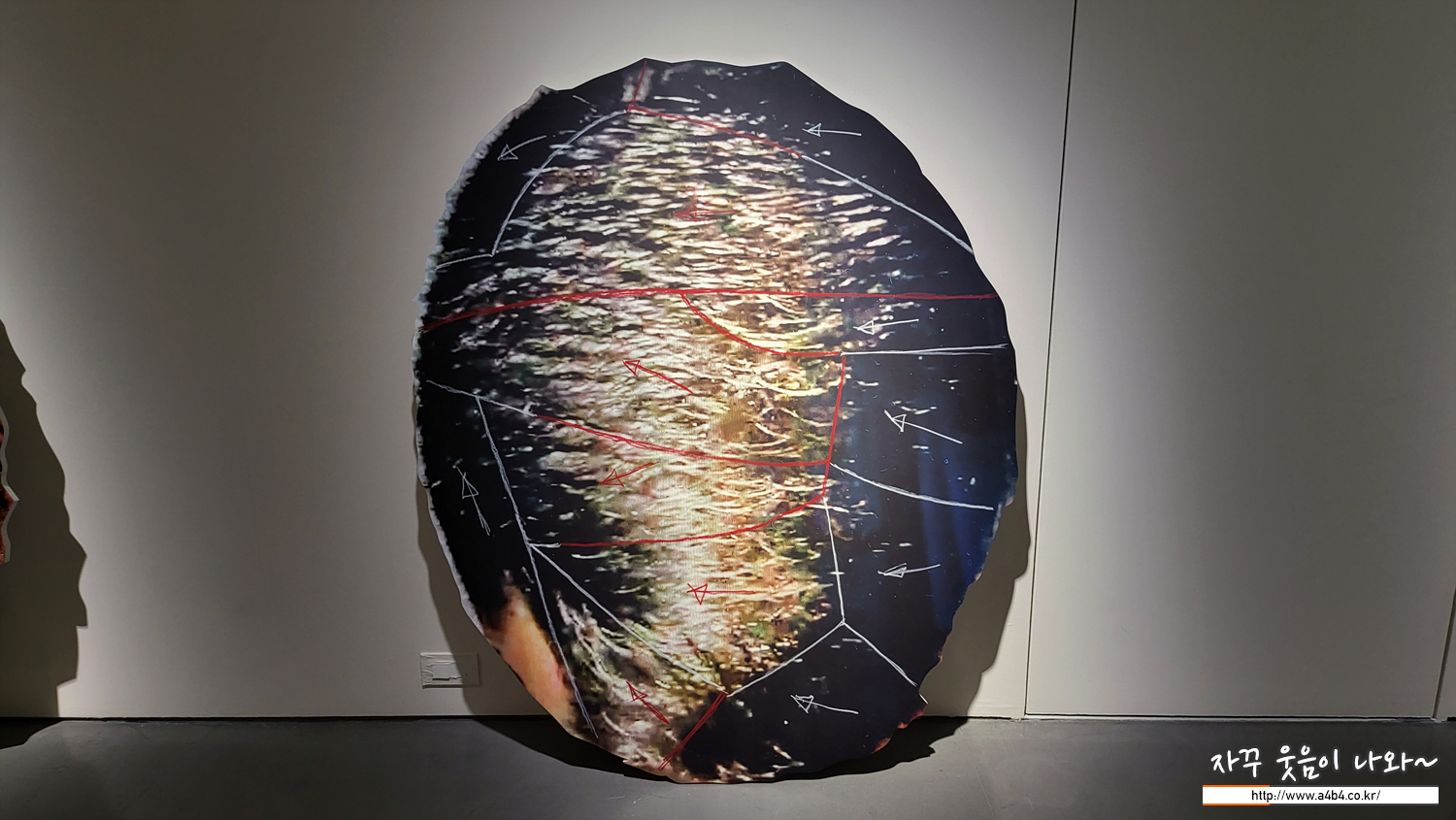 보는 사람에 따라서 다양한 답변이 나오지만, 작가는 체모를 표현했다고 합니다. 보는이에 따라서는 다소 불편한...