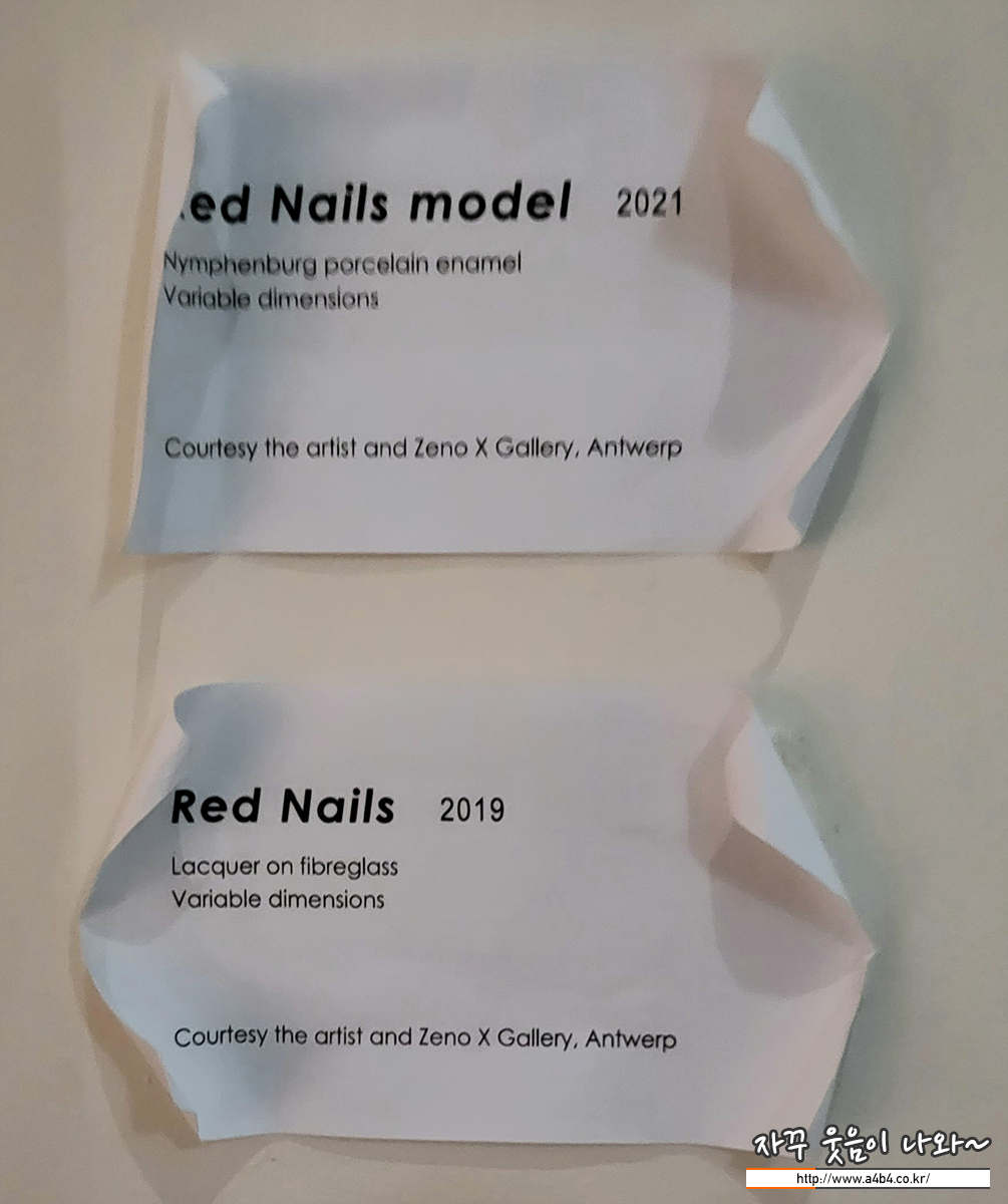 먼저 앞의 유리관에 전시되어 있는 마틴 마르지엘라의 레드 네일즈 작품을 감상하고...