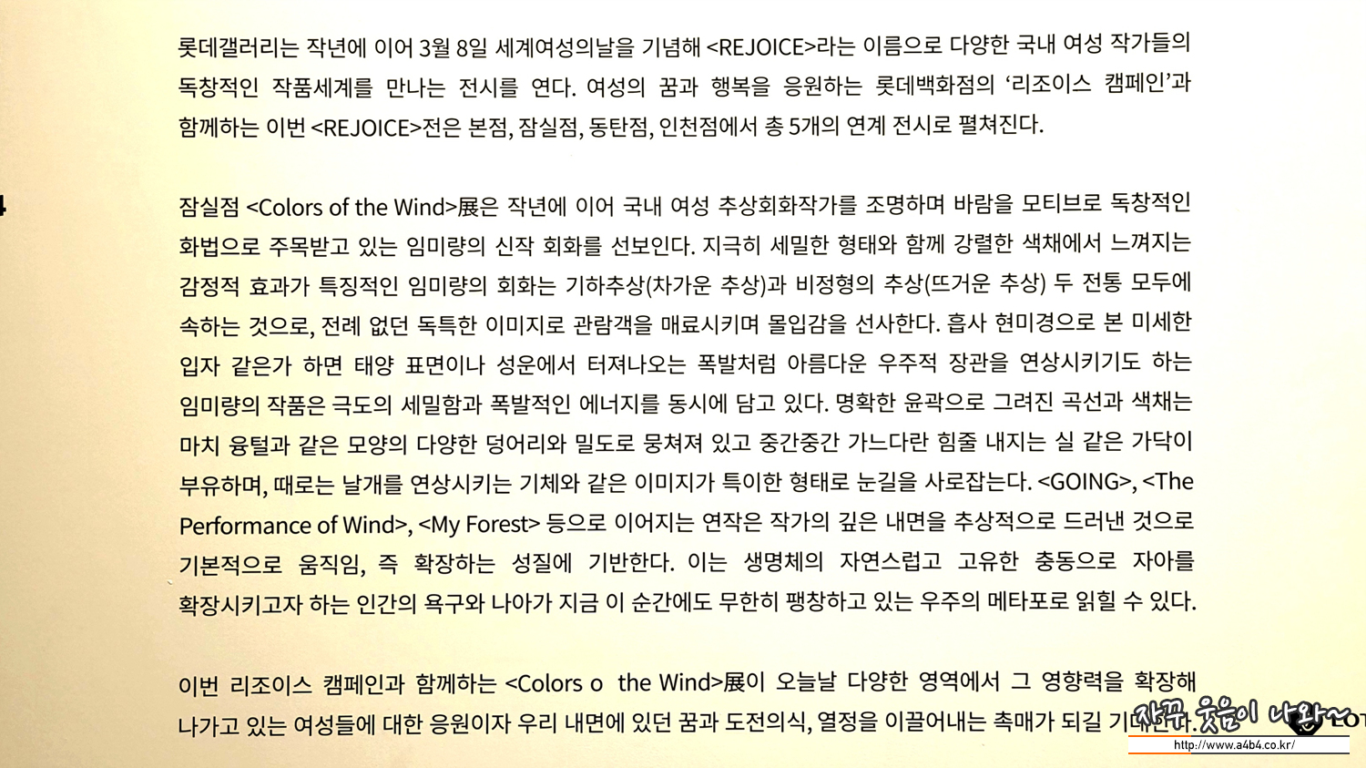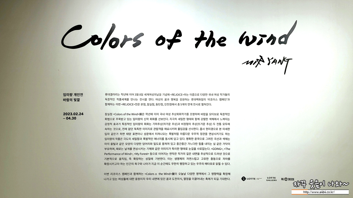 롯데갤러리에서 '미술과 여성, 빛을 그리다'라는 주제로 열리고 있는 전시회인 '임미량, 바람의 빛깔' 개인전 후기입니다.