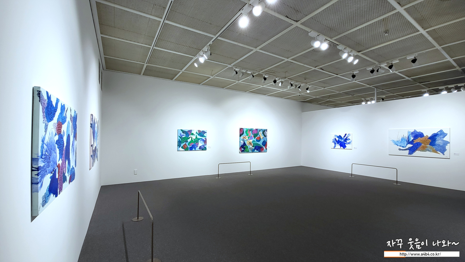 이번 작품들은 블루, 레드, 그린 등 작품 컬러에 맞춰 전시공간의 분위기도 세팅되어 있습니다.