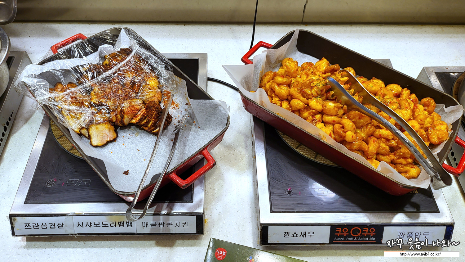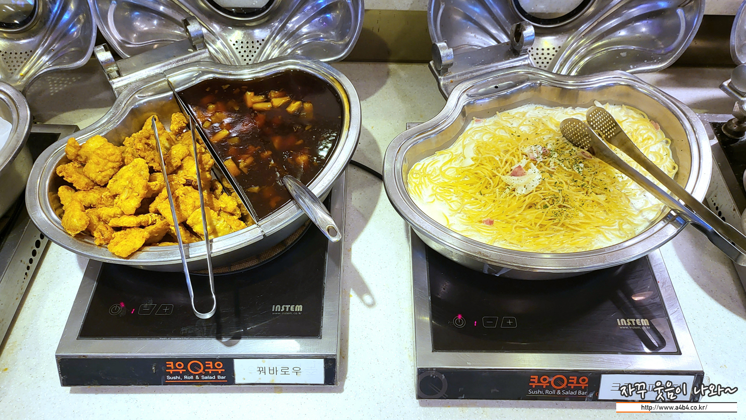 야끼우동, 크림파스타, 알리오올리오파스타, 고르곤졸라피자, 불고기, 깐풍기, 고추잡채, 팔보채 등이 준비되어 있다고 쿠우쿠우 홈페이지에서 안내받았는데 일부 메뉴는 없거나 변경되어 있네요