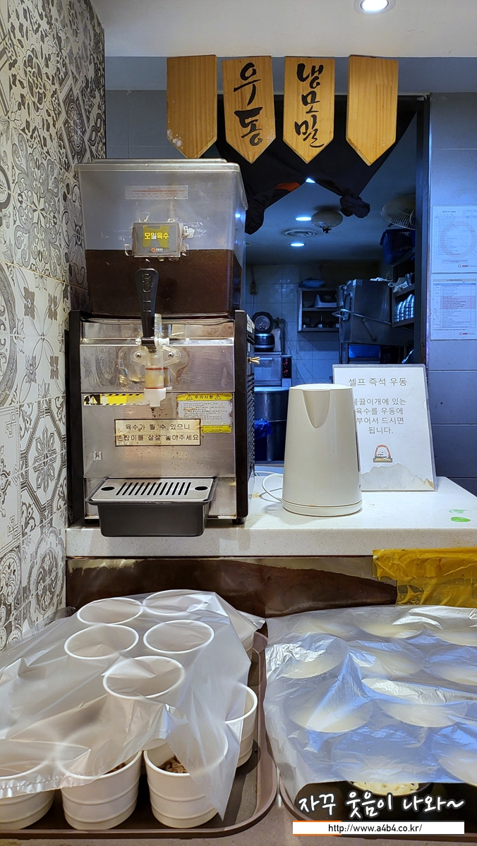 사골국과 크림스프, 우동과 모밀이 있는데요. 사골국물은 기대이상으로 맛있더라는...