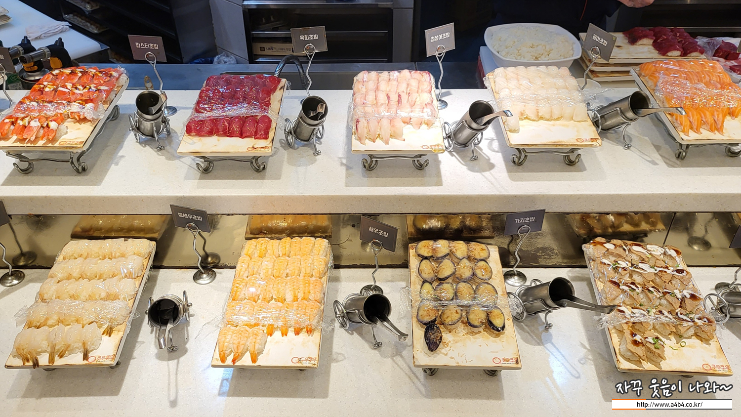 쿠우쿠우 매력중 하나는 다양한 종류의 초밥이 준비되어 있는 것인데요.