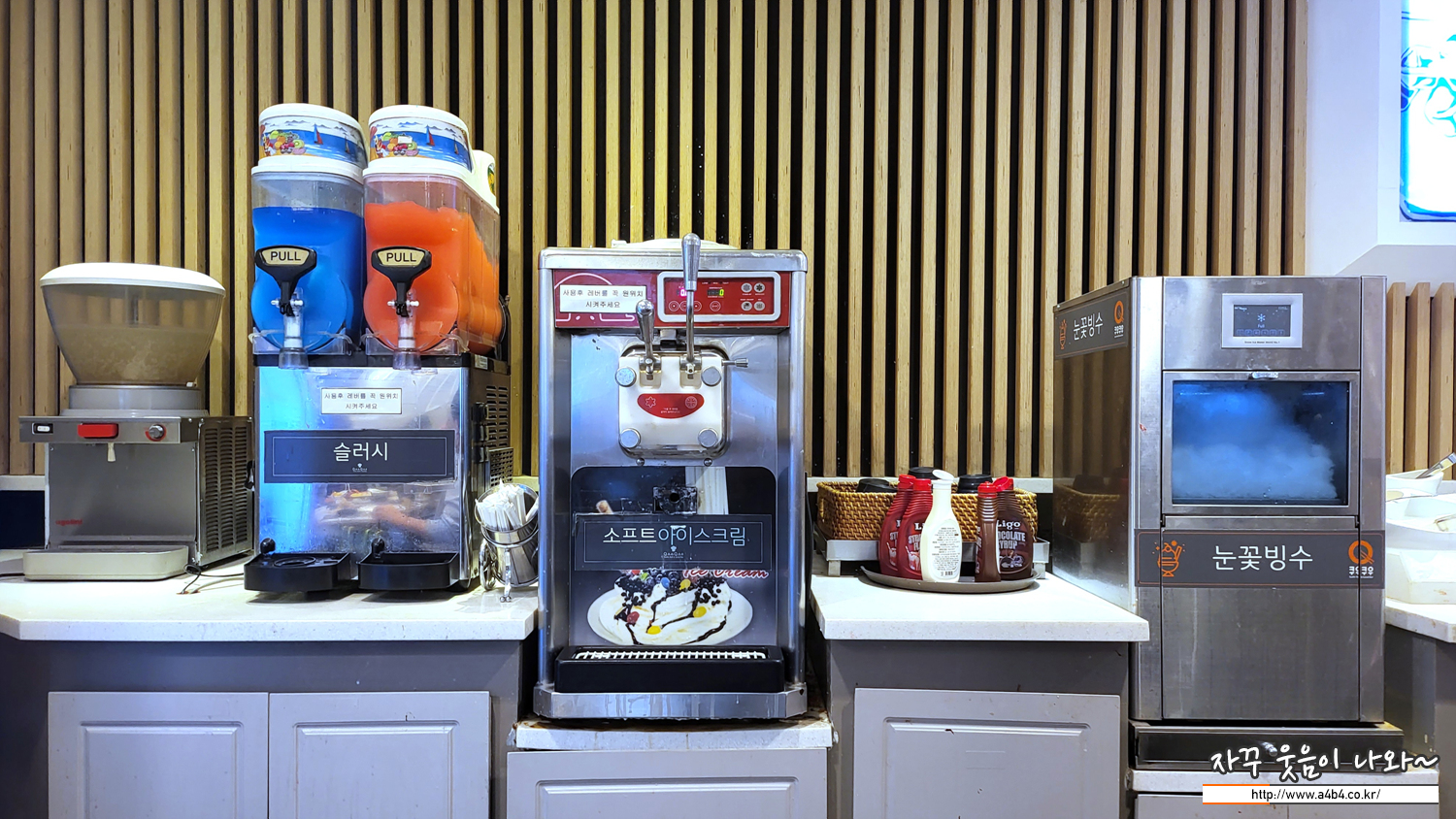 쿠우쿠우 음료는 여러 과일차 및 커피, 슬러시, 아이스크림, 빙수가 준비되어 있습니다.