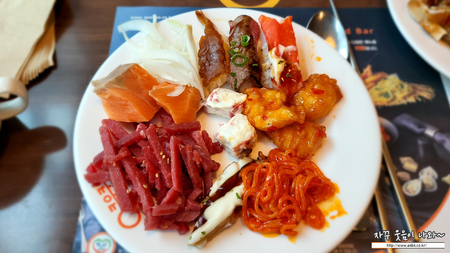 메뉴에는 연어, 게살 샐러드 등이 있다고 되어 있지만 그냥 풀로 변경된 메뉴가 좀 있네요.