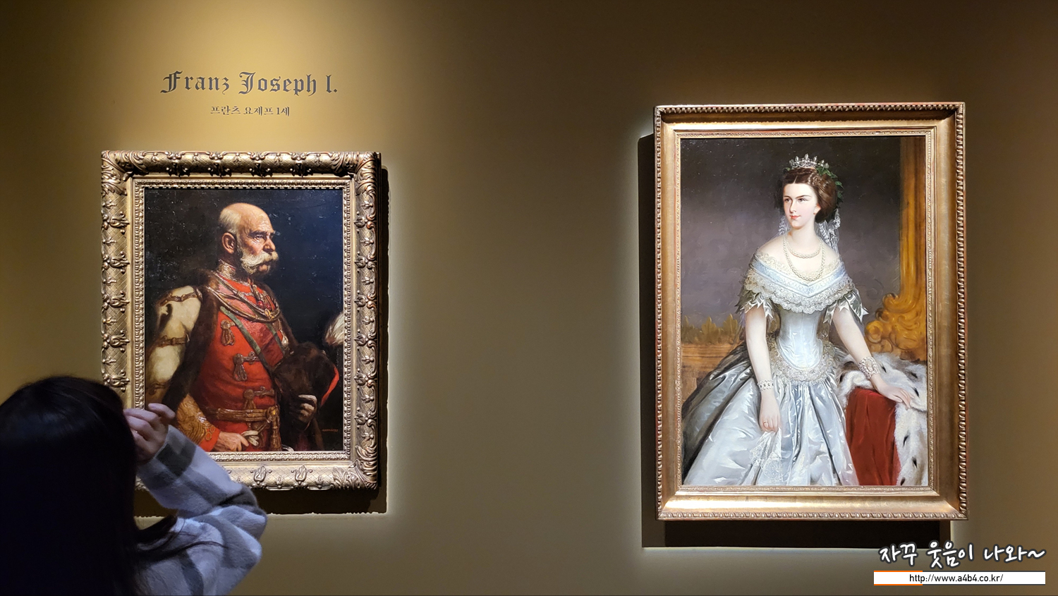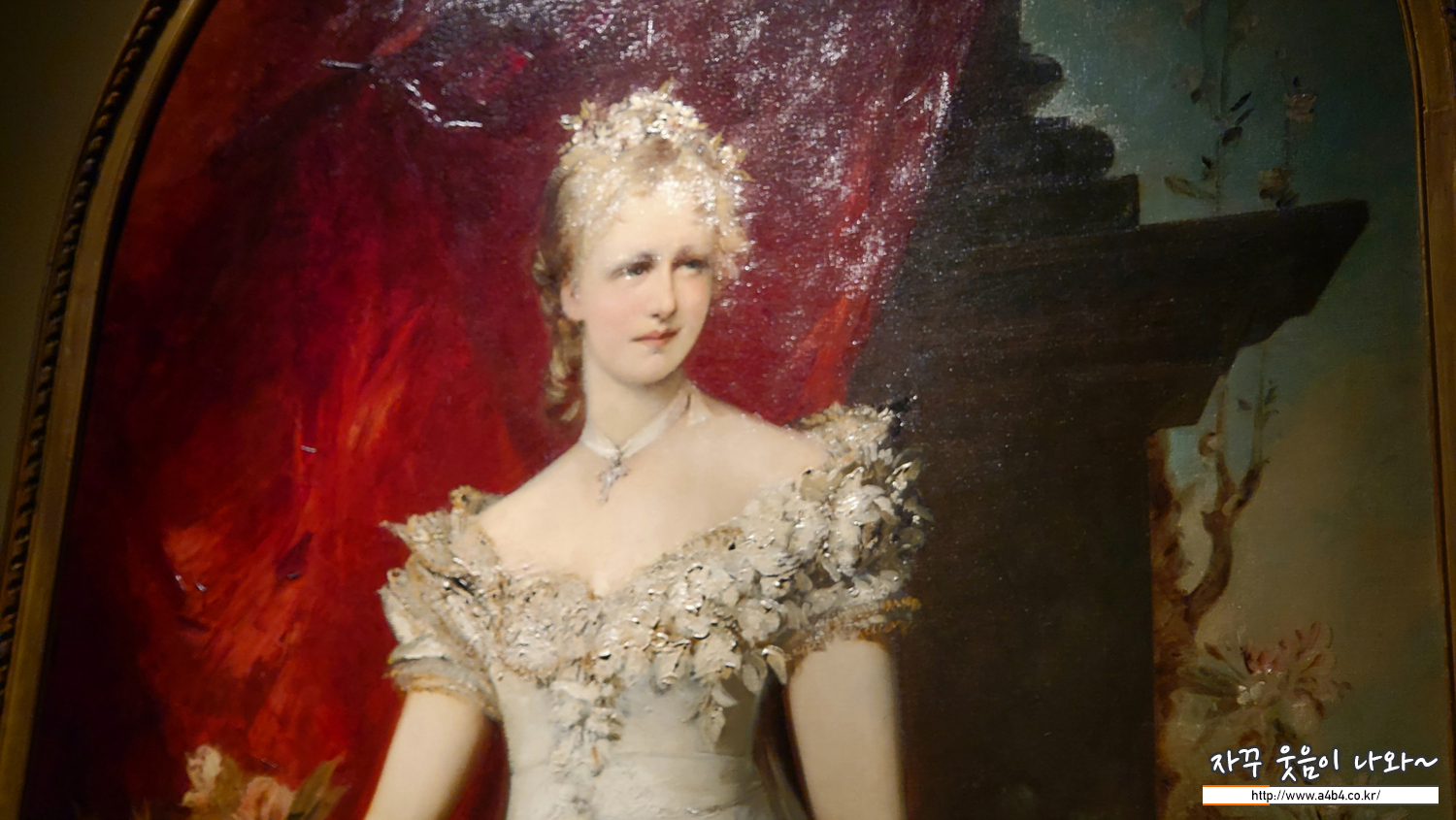 “시시”로도 불리는 엘리자베트는 오스트리아 국민 이 가장 사랑하는 황후이다. 초상화는 그녀가 21세 때 모습을 그린 것으로 어두운 배경에 밝은 푸른빛 드레스가 미모를 돋보이게 한다. 프란츠 요제프 1세는 그녀를 보자마자 사랑에 빠져 결혼했지만, 비교적 자유로운 환경에서 성장한 엘리자베트에게 엄격한 황실은 감옥과 같았다. 결국 오스트리아에 마음을 붙이지 못한 비운의 황후 엘리자베트는 1898년 제네바 여행 도중 이탈리아인 무정부주의자 에게 암살당하고 만다.