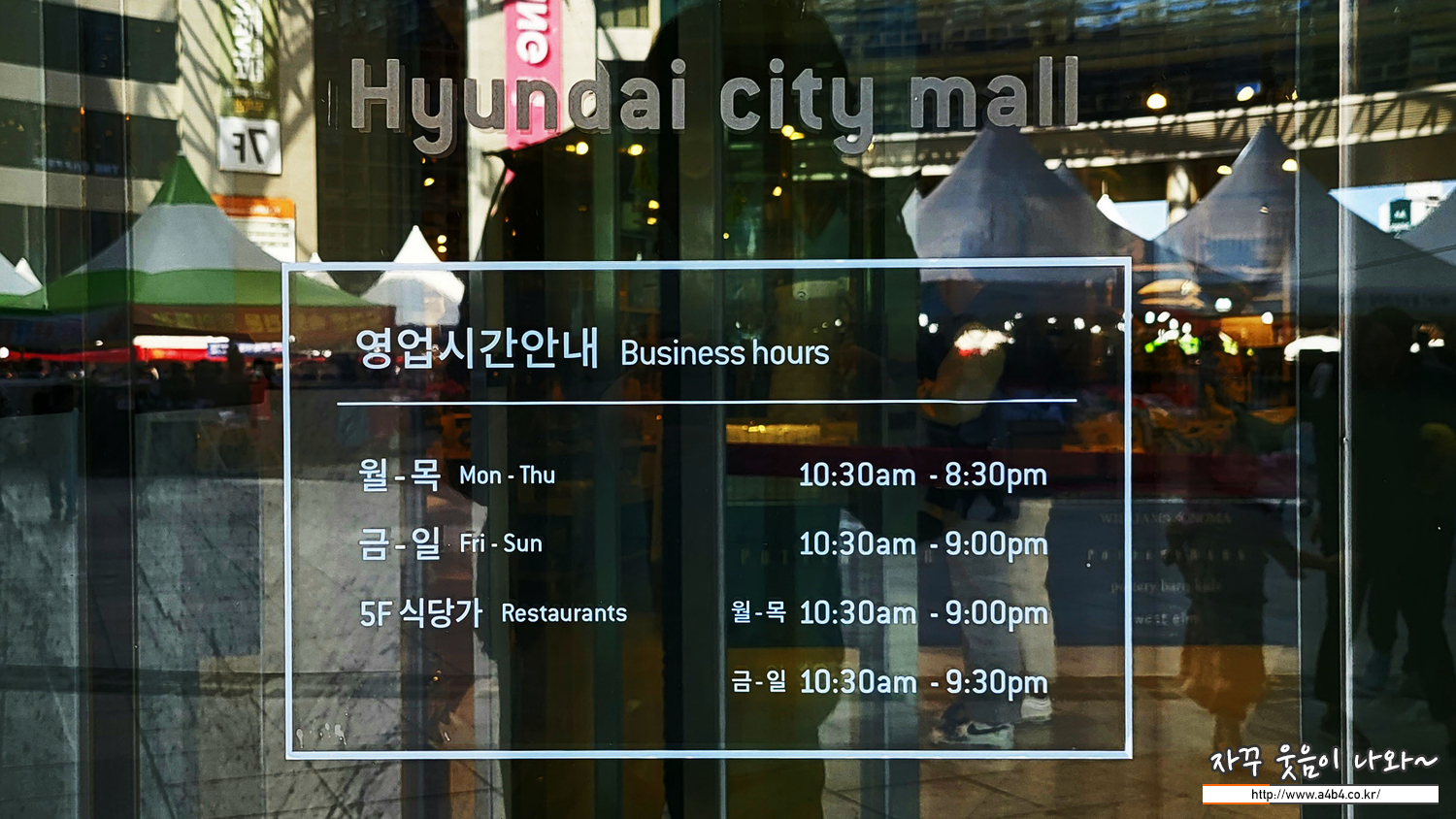 현대시티몰 가든파이브 영업시간은 오전 10시 30분에 오픈 해서 저녁 8시 30분 또는 9시에 문을 닫습니다. 식당가는 이보다 30분 늦게 닫네요.