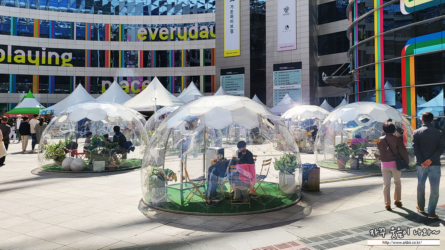 가든파이브 광장에서는 목줄만 잘 착용했다면 별다른 제한 없이 강아지 산책에 제한은 없어 보입니다.