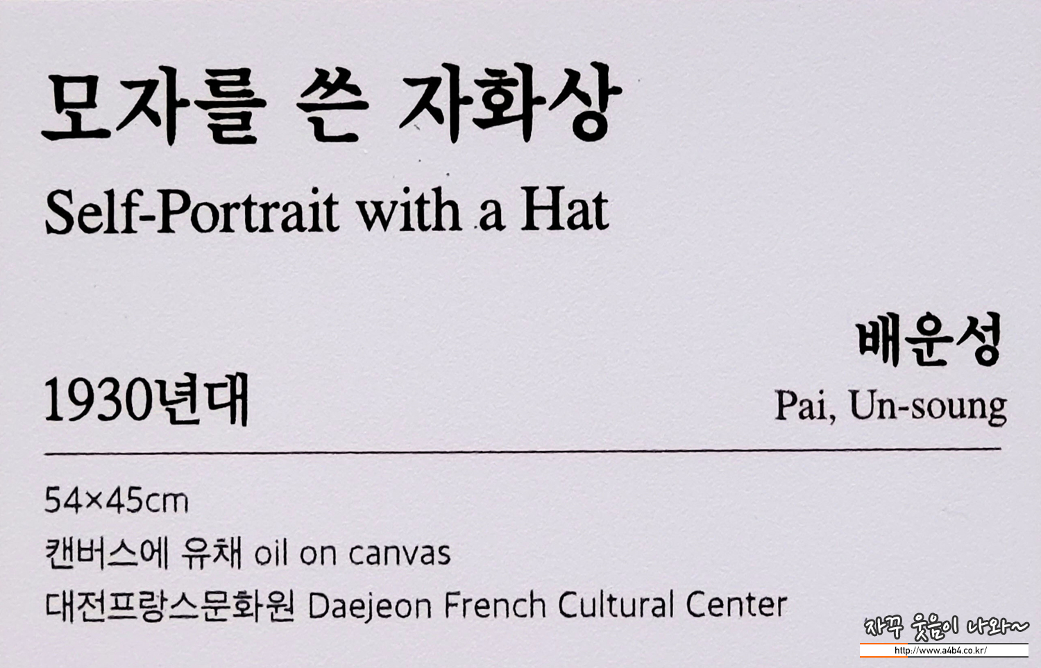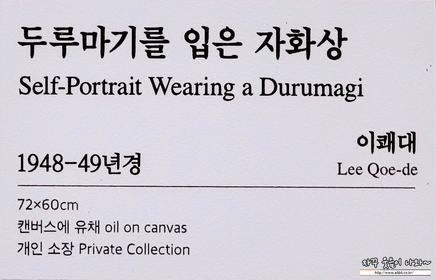 평화로운 시골 마을을 배경으로 당당히 한 사내가 당당히 서 있습니다. 파란 원색 두루마기에 서양식 중절모를 쓰고 있고, 왼손엔 서양의 팔레트를, 오른손엔 동양의 붓을 들고 있습니다. 이쾌대가 자신의 모습을 그린 자화상입니다. 그 뒤로 논과 밭이 펼쳐진 마을 길엔 물동이를 머리에 인 아낙네들이 걸어갑니다.전형적인 한국 시골의 풍경입니다. 작가는 의도적으로 배경과 소품에서 한국적인 것과 서양적인 것을 함께 담았습니다.