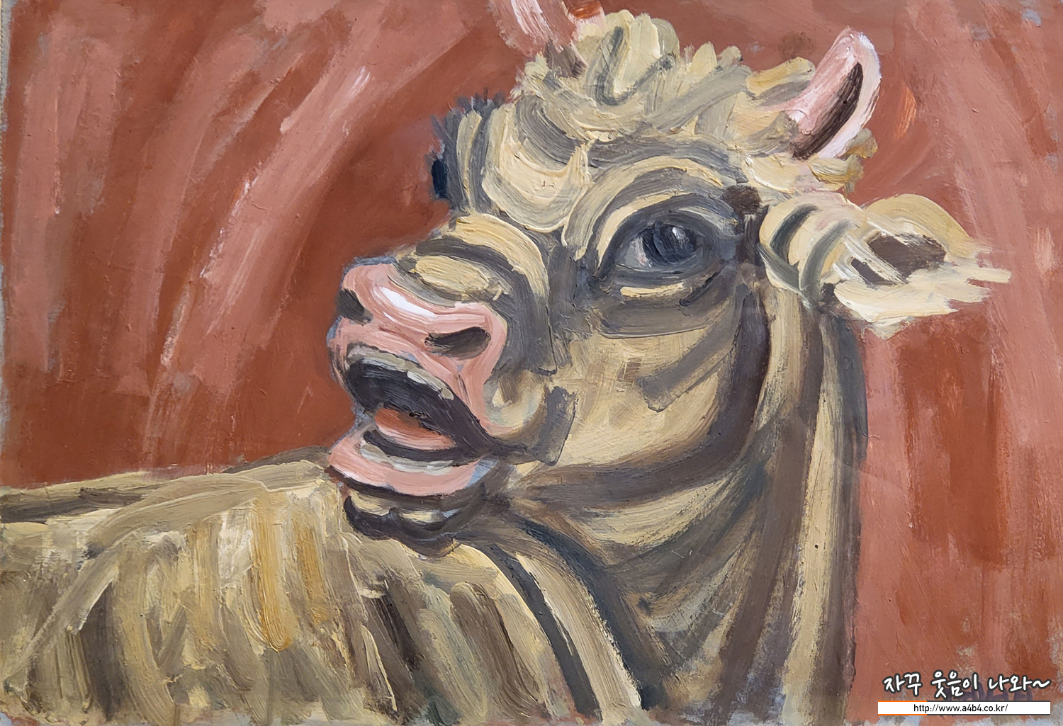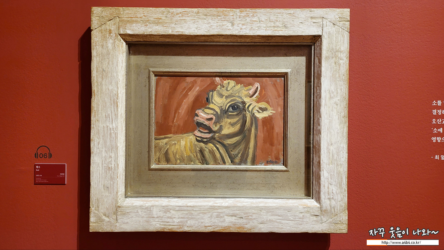 붉은 바탕을 배경으로 황소가 입을 크게 벌리고 울부짓고 있습니다. 크게 치뜬 순한 눈망울엔 슬픔이 묻어납니다. 한국인의 '국민 화가' 이중섭의 빼놓을 수 없는 대표작 '황소'입니다. 역동적인 붓놀림과 거친 선으로 황소를 생동감 있게 그렸을 뿐만 아니라 세상의 모든 기운을 응집한 것 같은 강력한 힘을 화폭에 담았습니다.