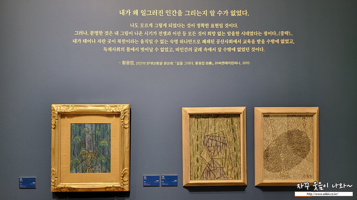 전시장은 작가별로 구성되어 있으며, 이렇게 작가의 작품 들과 주요한 내용이나 평가가 안내되어 있습니다.