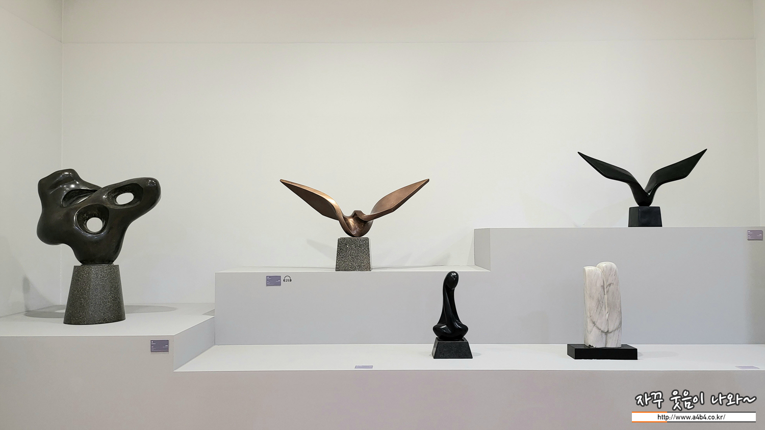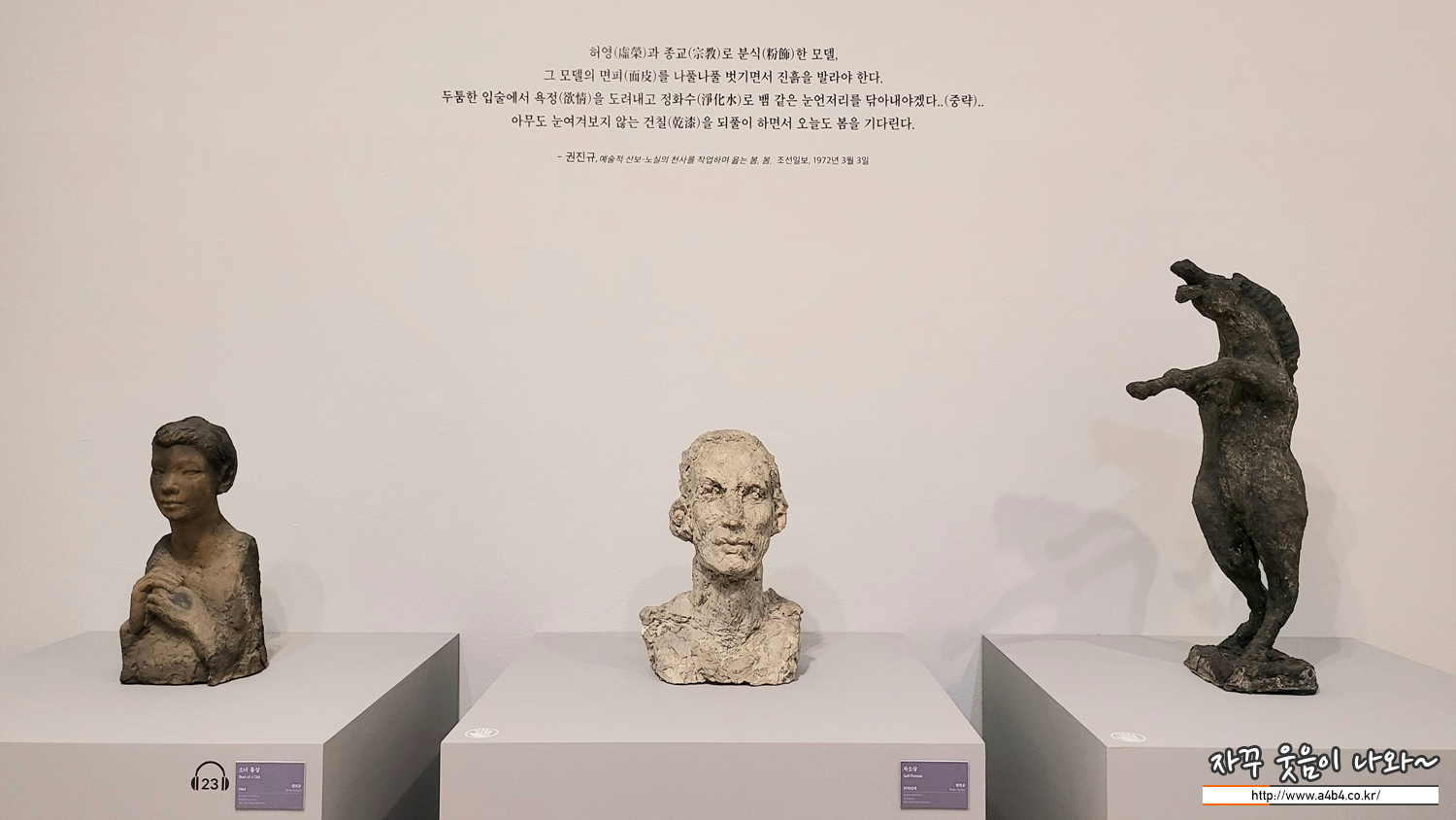 이제 아래층으로 내려가 마지막 '조각, 시대를 빛고 깎고' 섹션을 관람하시겠습니다.