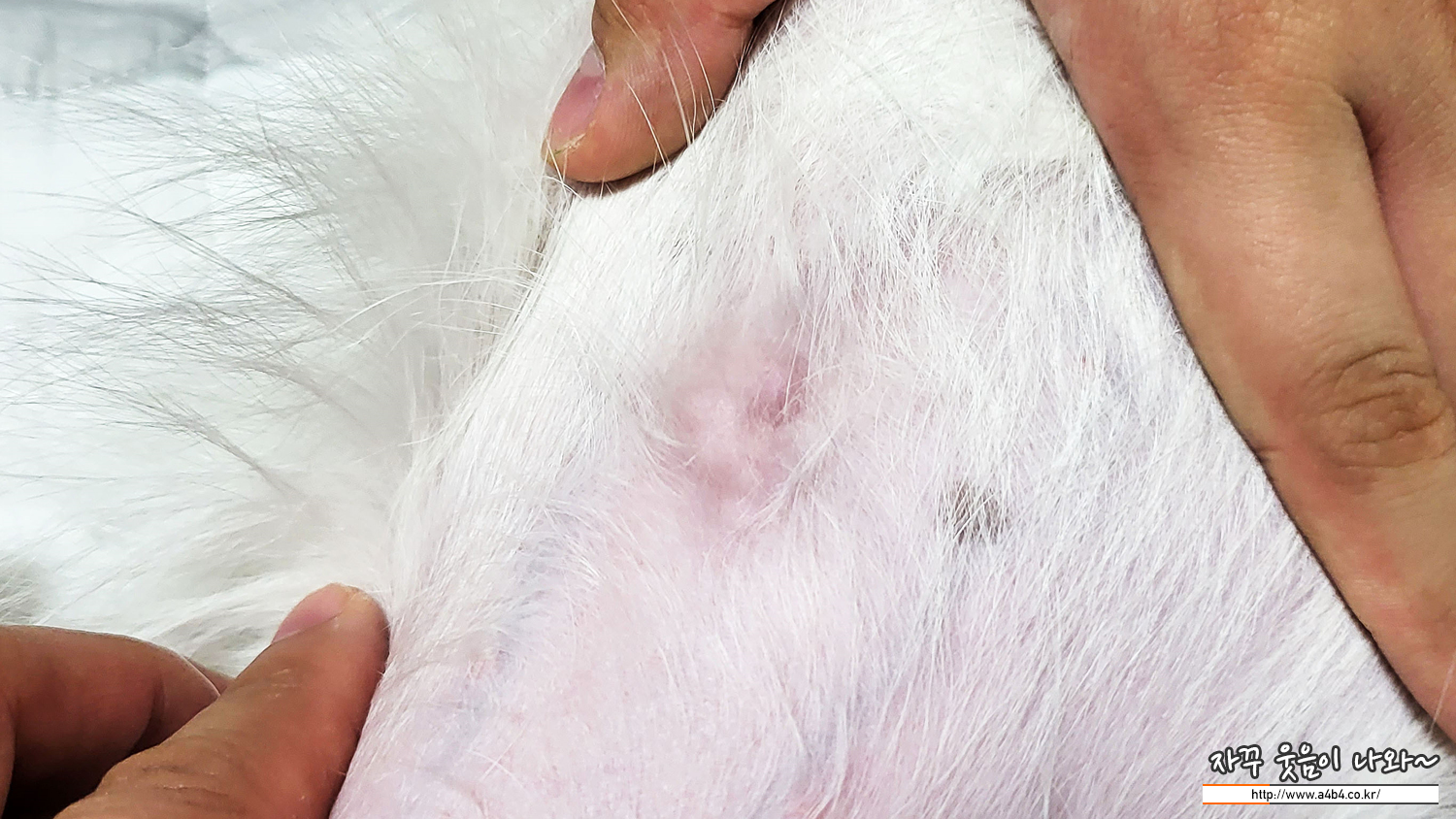 우리 설탕이도 배꼽부분에 탈장이 있습니다. 강아지 탈장의 90%가 선천적인 이유라고 합니다. 탯줄이 통과하는 구멍이 완전히 막히지 않고 마무리되어 몸 안쪽의 장기가 돌출한 것이라고 합니다.