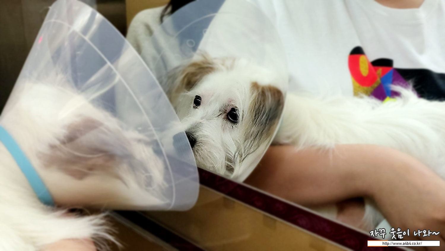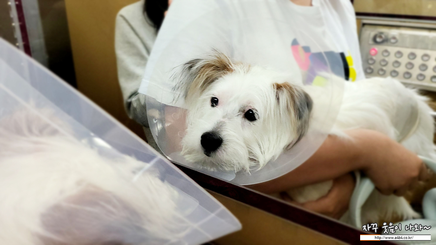 수술 후 점심 시간 조금 넘에 수술 잘 끝났고 회복중이라는 전화 받고요. 오후에는 5시 30분 쯤 설탕이 데리러 오라고 안내받았습니다. 보통 강아지들은 중성화 수술후 기운이 없다는데. 우리 설탕이는 바로 꼬리 흔들며 달려오네요.