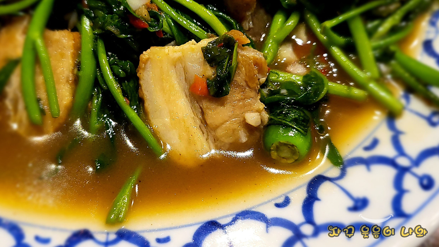공심채는 제가 좋아하는 요리인데요. 보통 동남아 음식점에 가면 꼭 주문하는 요리 중 하나입니다. 굴소스와 어울린 공심채 식감과 함께 약간 매콤한 맛을 보이는데요. 역시 삼겹살이 들어간것 보다는 순수한 공심채볶음이 더 저에게는 맛는 것 같습니다.