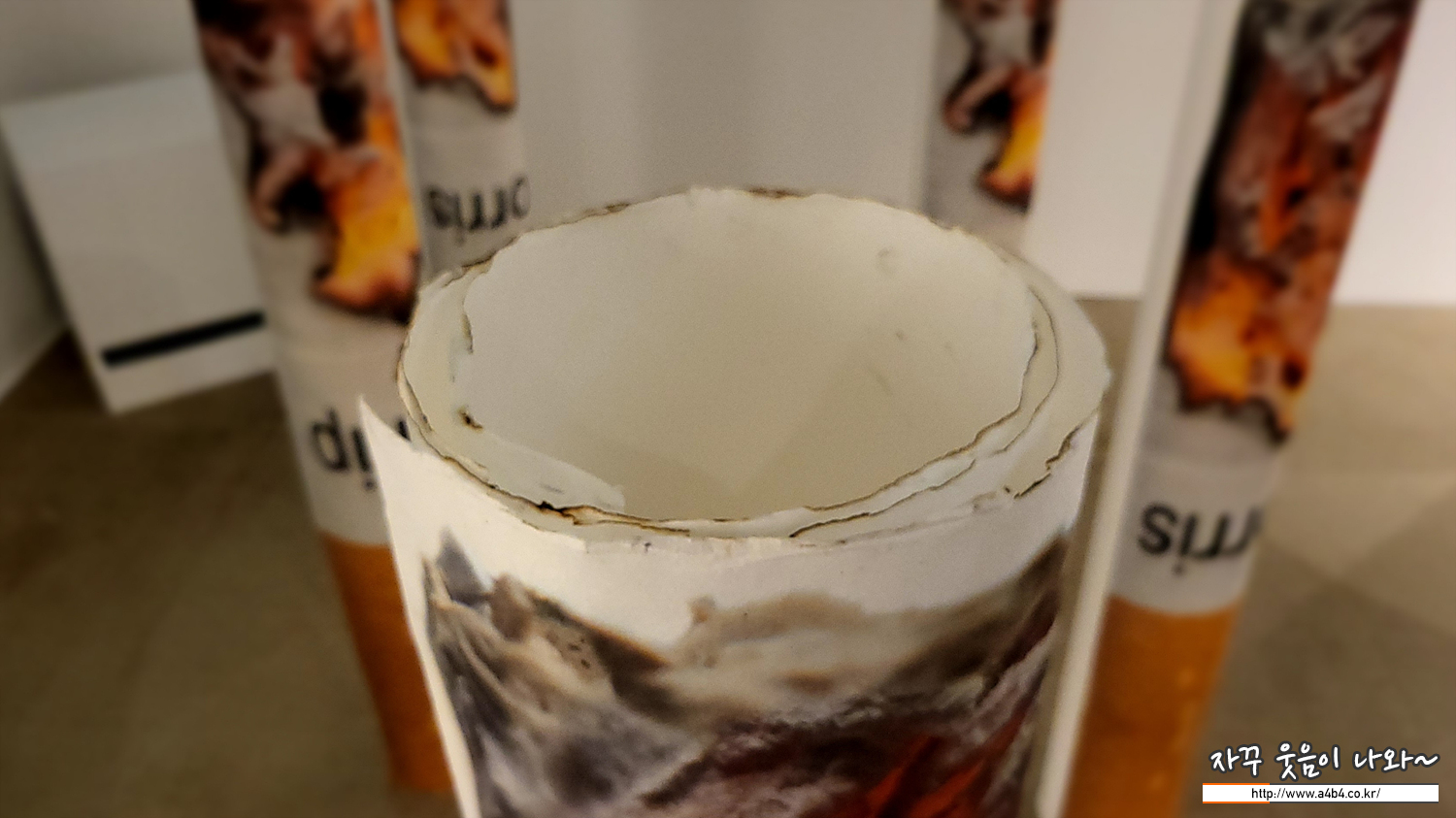 커튼을 넘어 전시공간에 들어오니 운영하시는 분께서 기기를 작동 하시네요. 말보로담배 조형물 뒤에서 흰 연기그 나옵니다.