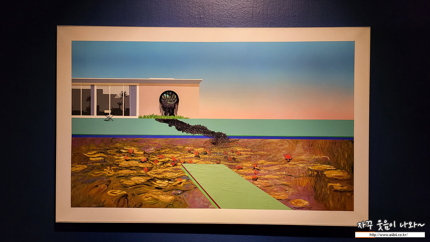 섹션 2 '진화의 시리즈'에서는 영국의 유명한 현대화가인 데이비드 호크니와 클로드 모네의 수련 작품을 차용해서 작업한 연작들이 전시되고 있습니다. 특히 글로벌 거대 정유회사로 인한 환경오염에 대한 위험성을 작품으로 전달하는...