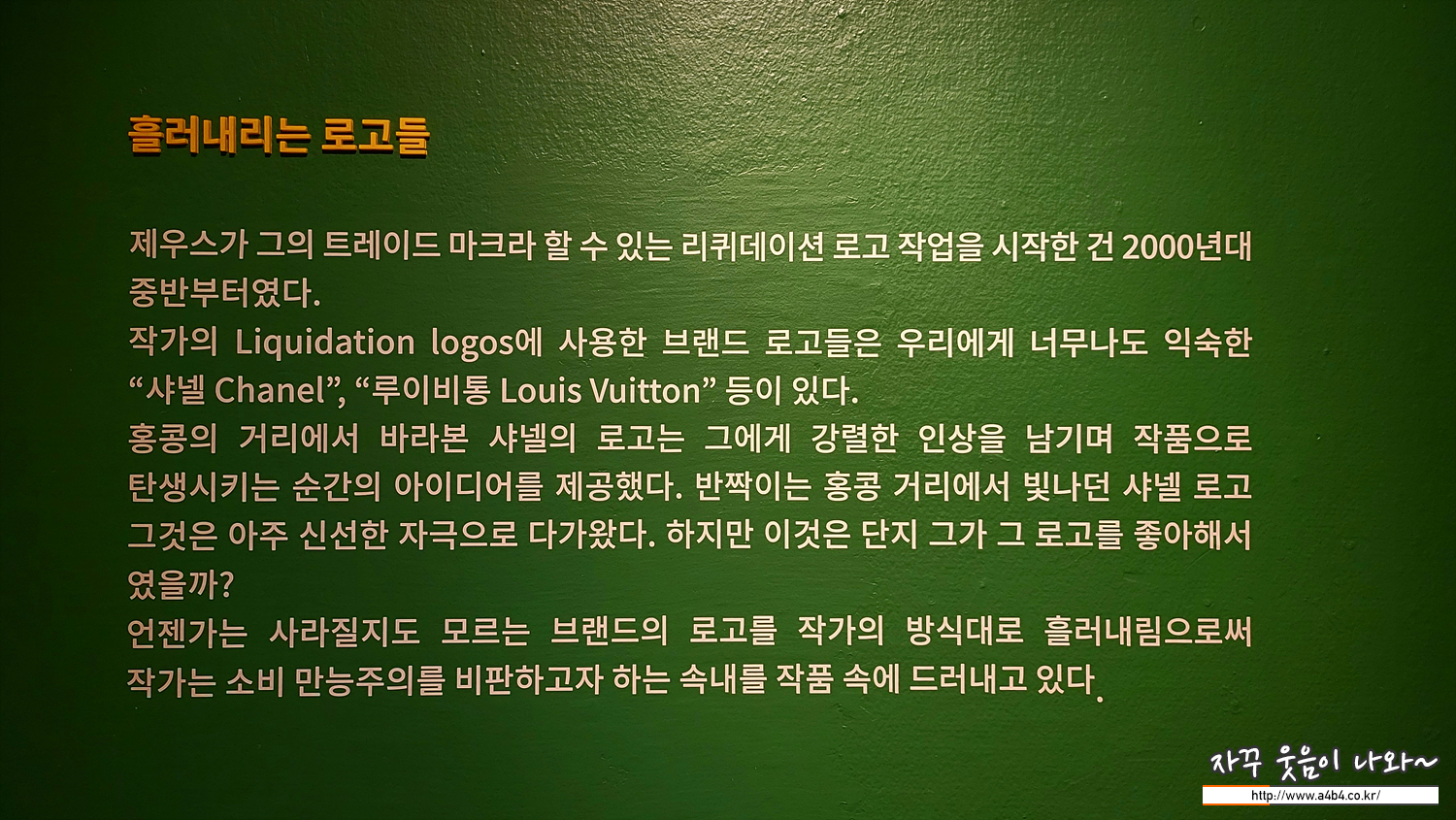 샤넬과 루이비통 로고심볼을 활용한 제우스의 liquidation 대표 작품들이 전시된 스트릿 노이즈 전시회 후기는 지난 포스팅 참고하세요.