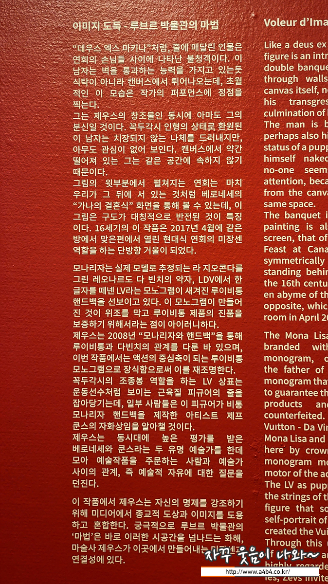 이번 전시회에서 가장 오랜 시간을 보낸 공간입니다. 2022년 7월 모나리자 작품이 걸려있는 루브르박물관 711번 방에 나타는 제우스는 설치작업? 을 하게 됩니다. 그 엄청난 공간에서 이런 작업을 허용한 프랑스의 미술관도 대단하다는 생각이 듭니다.
