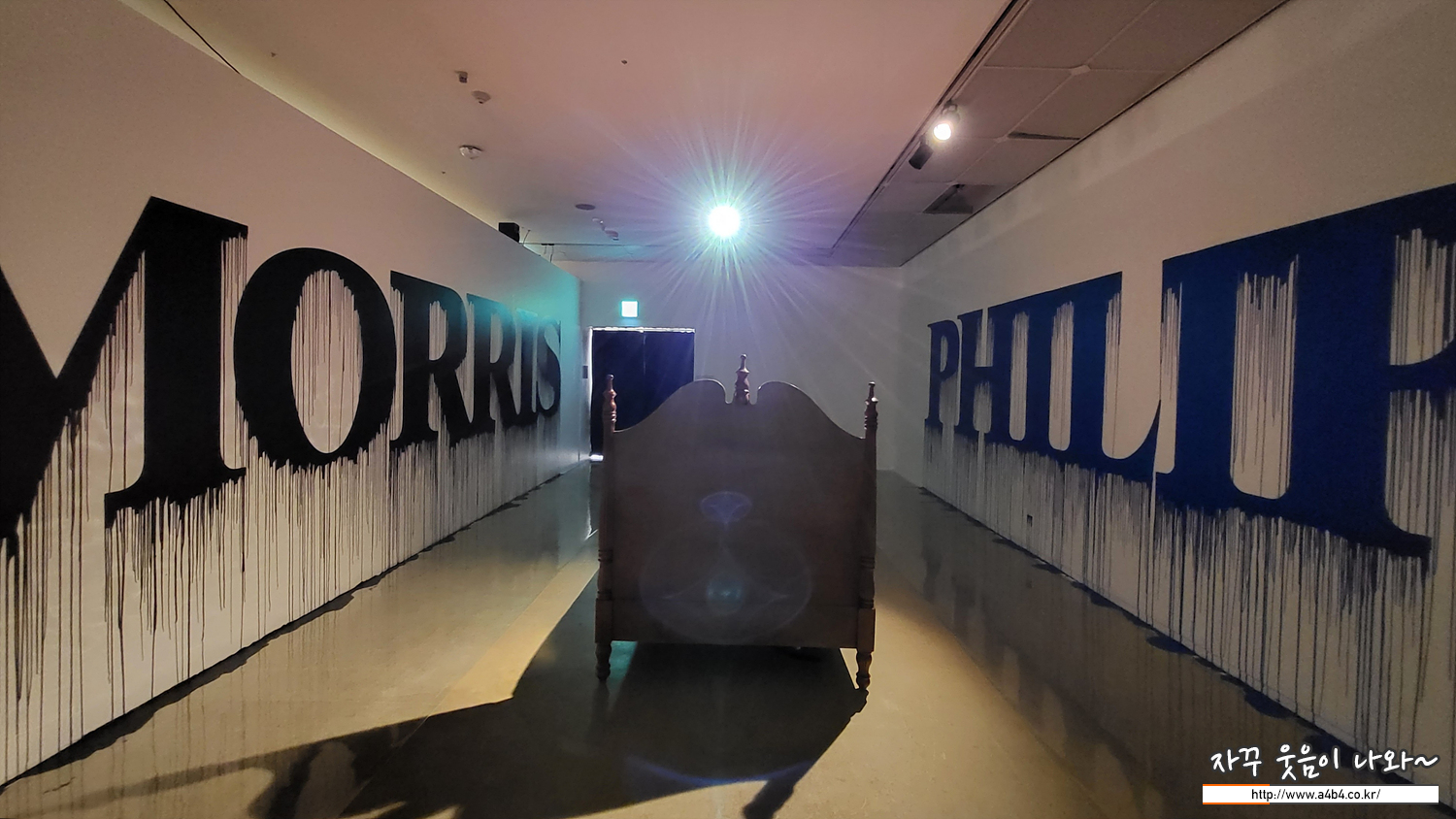 이번 Room 711 전시회의 마지막공간 - 침대의 뒷부분과 흘러내리는 필립모리스 로고가 보입니다.