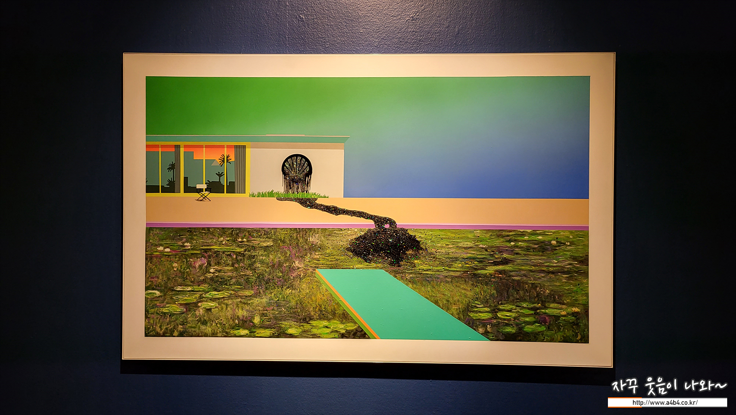다시 쉘로 돌아와서 이 연작이 다수 전시되어 있는데요. 하나하나 이동하면서 보면 마치 쉘 로고에서 흘러나오는 원유가 모네의 수련이 있는 연못을 점점 검게 오염시키는 느낌이 들게 합니다.