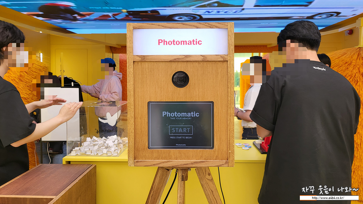 요즘 인기인 하루필름, 인생네컷 등과 같이 노란 프레임속 곤잘레스 그림이 그려진 네컷사진을 무료로 찍을 수 있습니다.
