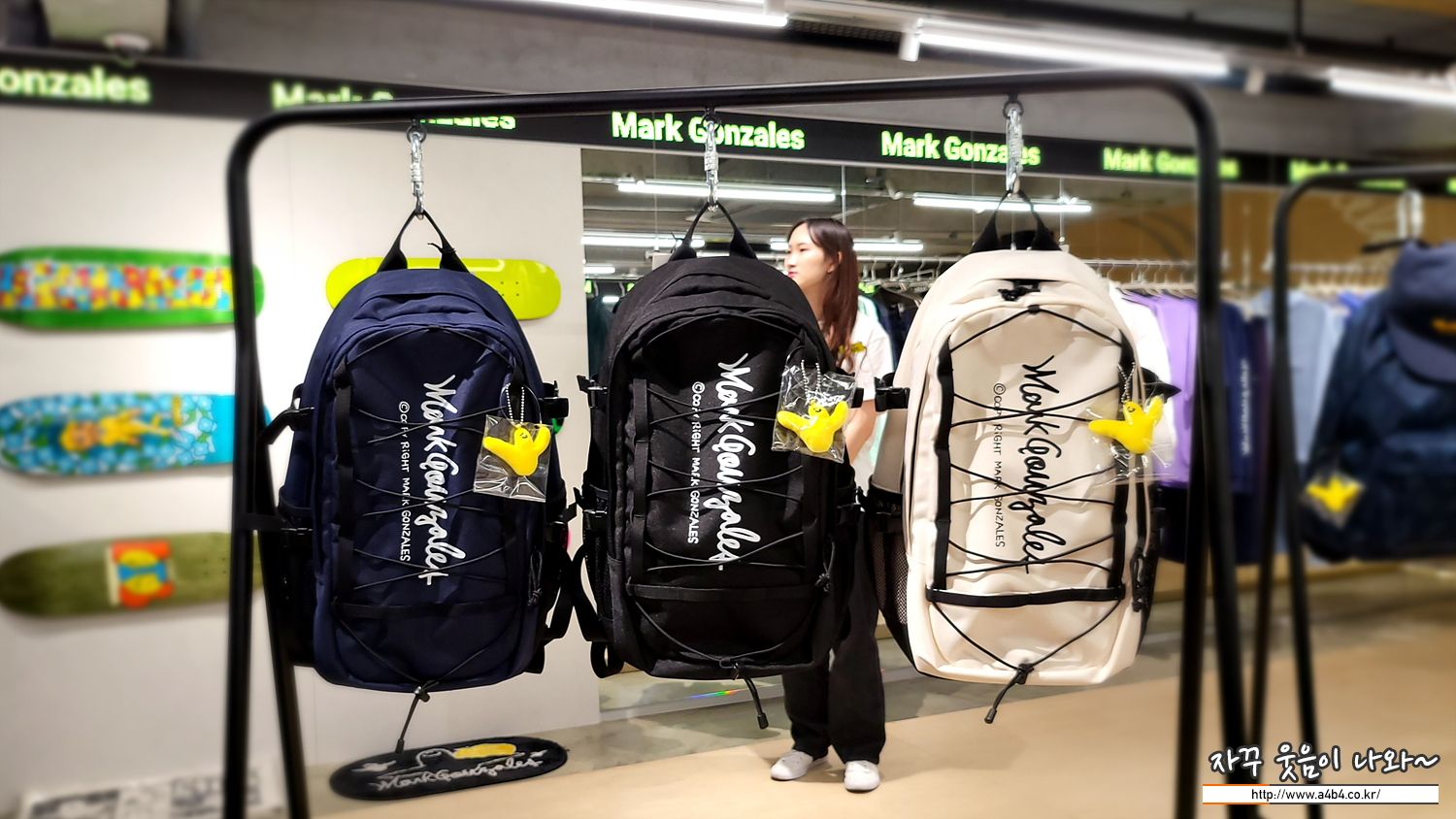 백팩은 두가지 타입 여섯가지 제품이 준비되어 있고요. 마크곤잘레스 가방과 깔맞춤으로 모자까지 준비되어 있습니다.