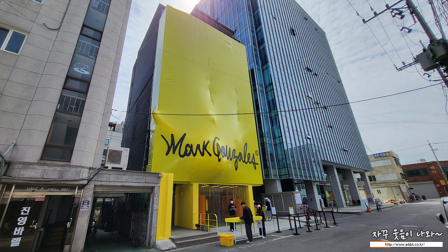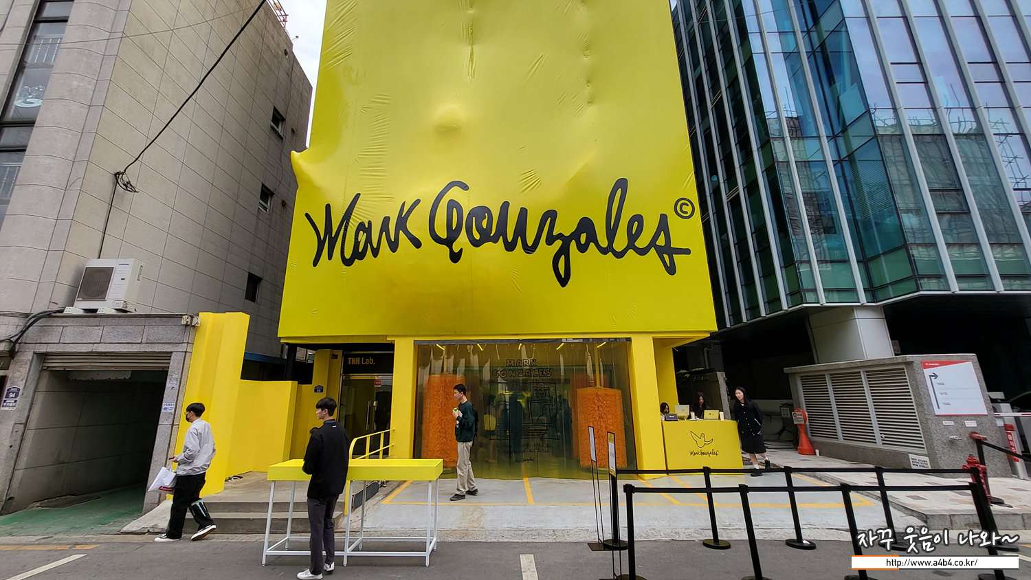 날아디니는 바나나, 마치 유딩이 그린 것 같은 노란색 웃은 바나나로 요즘 핫한 브랜드 중 하나인 마크 곤잘레스 팝업스토어 방문후기입니다. 특히 우리집 중딩이 너무나 좋아하는 브랜드로 집에도 이미 여러벌 옷이 있는데요. 이번에 핫플레이스 중 하나인 성수동에 팝업스토어가 오픈해서 바로 방문 했습니다.