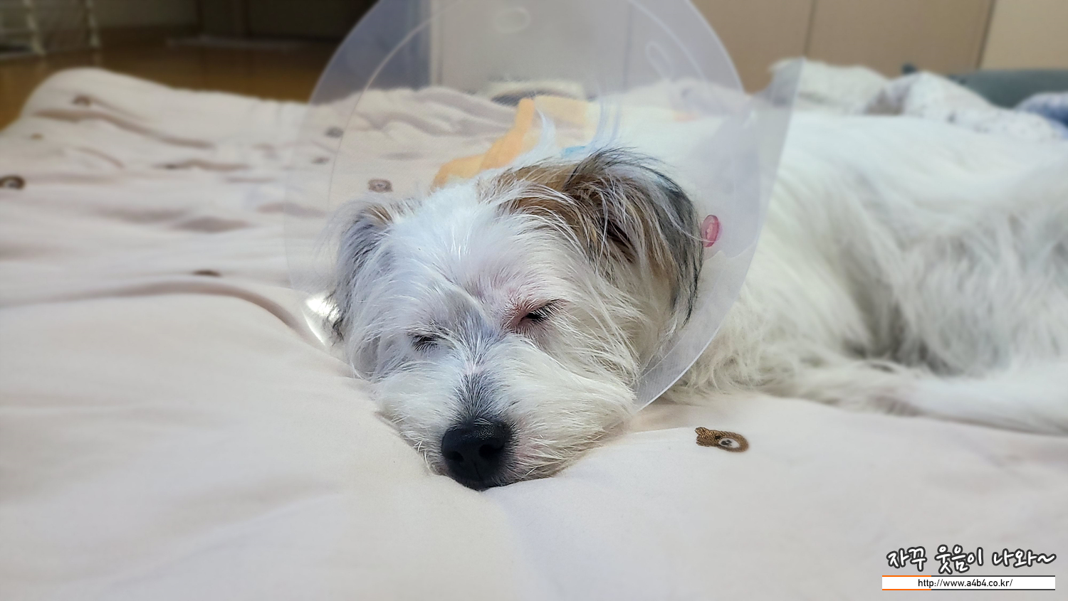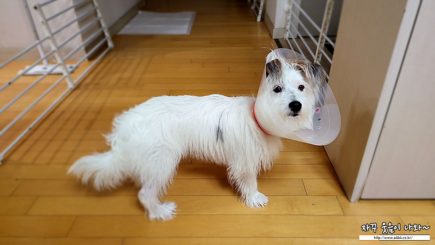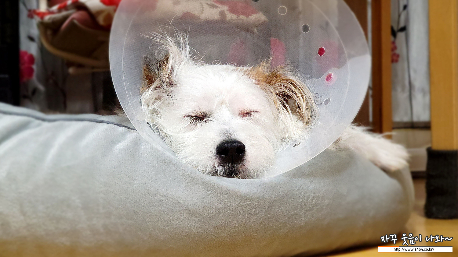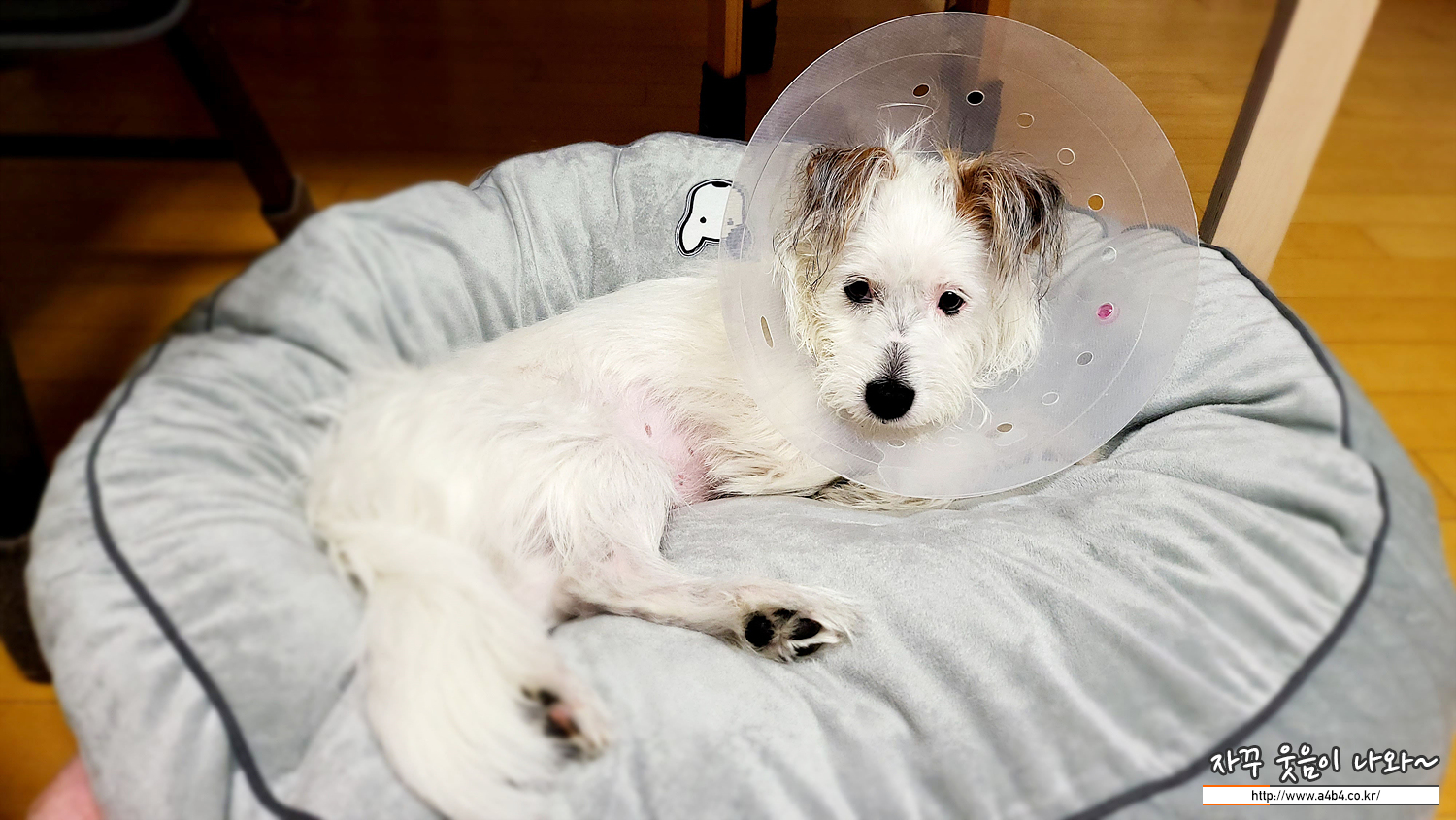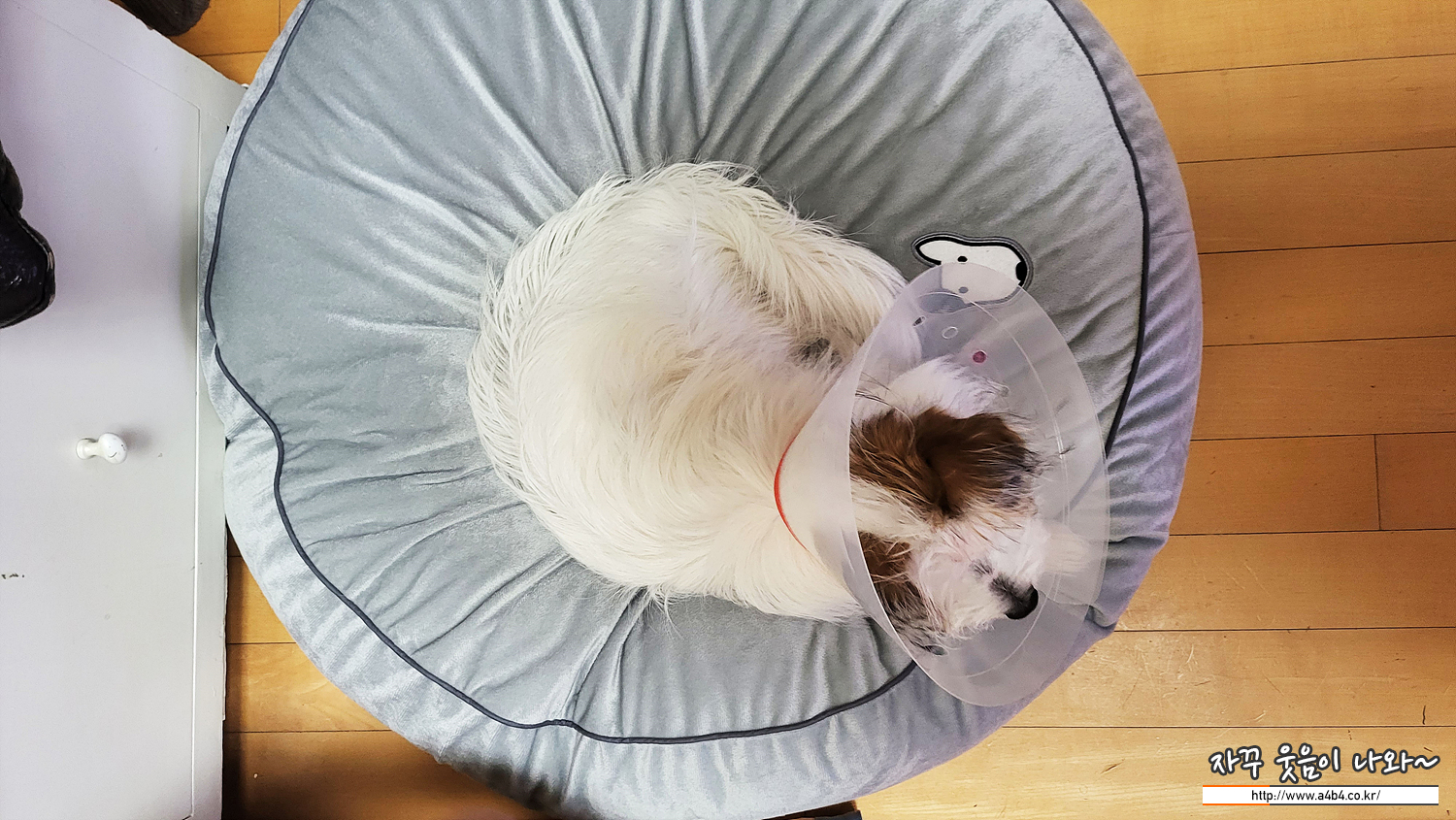 강아지 중성화 수술후 주의사항 중 하나가 1주 이상 외출하지 않고 안정적인 자세가 중요한데요. 우리집 설탕이는 망한 것 같습니다.