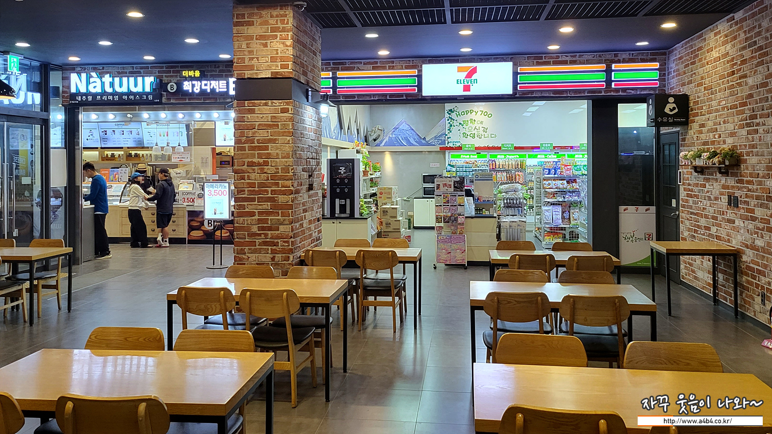 아이스크림점 나뚜르, 편의점 세븐일레븐이 입점해 있습니다. 조금 아쉬운 부분은 좋아하는 브랜드 커피숍은 없습니다. 엔젤이너스나 탐앤탐스, 할리스 커피 등 익숙한 브랜드가 아닌 비어드파파 라는 브랜드가 입점해 있습니다.