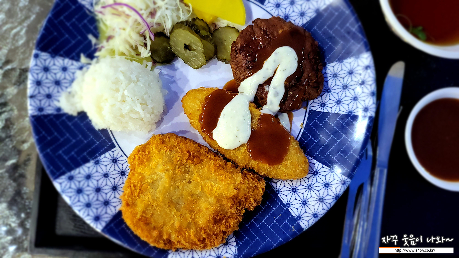 스페셜 돈가스는 돈가스와 생선가스, 함박스테이크가 한 덩어리씩 나오는 모듬돈가스 입니다. 가격은 11,000원