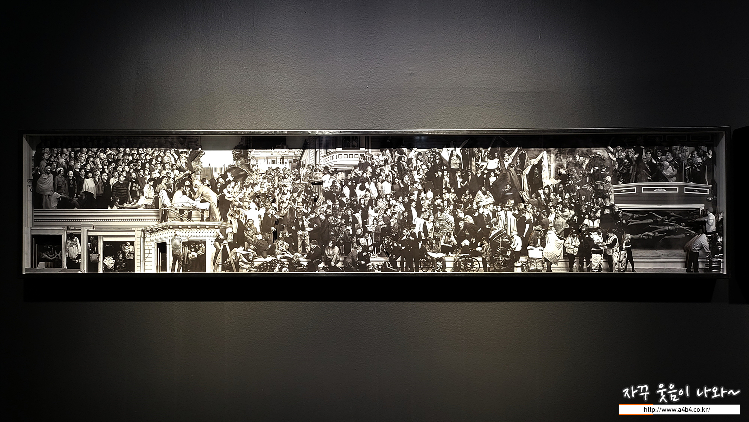 앞에서 850명의 사진을 찍었다고 했는데요. 해당 작품은 한 명 한 명 인터뷰후 개별촬영을 진행하고 이후 합성한 작품이라고 합니다. 스케일도 대단하지만 이런 작품을 구상할 수 있다는 것부터가 거장의 반열에 오를만 하다는...