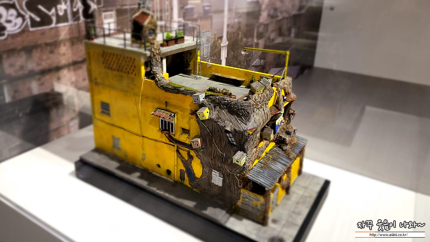 철거건울에 무단으로 침임? 들어가서 건물 안쪽에 작업했다고 합니다. 이후 건물이 철거되면서 자연스럽게 그의 작품이 노출되는 효과를...